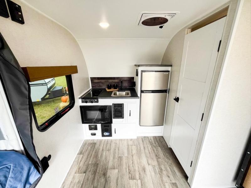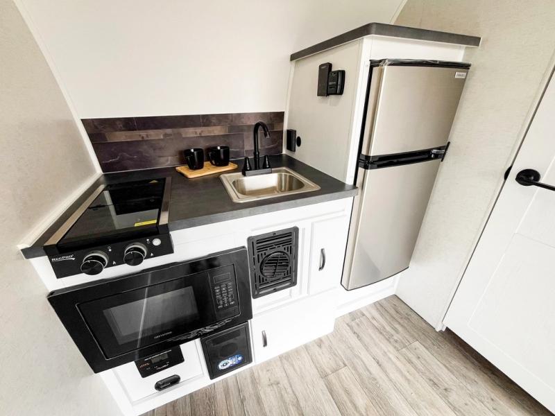 Make every outdoor adventure count with a Hopper travel trailer or toy hauler travel trailer by Modern Buggy RV! These lightweight units are built to last with a custom steel frame and Azdel walls for added durability. You'll find all the necessities needed inside, such as a 13.5k BTU A/C, a 19k BTU furnace, and a Fogatti on-demand water heater for hot showers after trail riding or hiking. The Hopper is off-road capable with all-terrain tires, electric brakes, and 14" ground clearance. You will also enjoy the black roller shades inside, along with White Sands cabinetry and USB stations to keep your gadgets charged and ready to go!