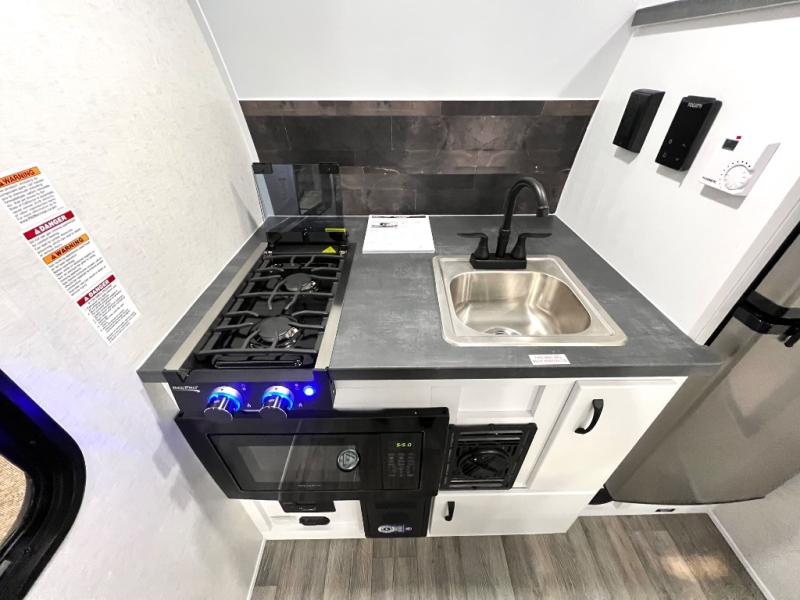 Make every outdoor adventure count with a Hopper travel trailer or toy hauler travel trailer by Modern Buggy RV! These lightweight units are built to last with a custom steel frame and Azdel walls for added durability. You'll find all the necessities needed inside, such as a 13.5k BTU A/C, a 19k BTU furnace, and a Fogatti on-demand water heater for hot showers after trail riding or hiking. The Hopper is off-road capable with all-terrain tires, electric brakes, and 14" ground clearance. You will also enjoy the black roller shades inside, along with White Sands cabinetry and USB stations to keep your gadgets charged and ready to go!