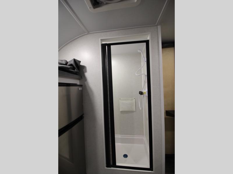 Load up the kayaks or dirt bikes for fun weekends in this toy hauler! Once you've unloaded your toys using the ramp door, you can start lunch in the front corner kitchen that includes a two-burner stove, a 12V refrigerator, and a stainless-steel sink for easy clean up. Speaking of cleaning up, the dry bath is also up front that includes a separate shower and Thetford toilet. And the 50" x 74" Murphy-style bed and side pop-out tent will provide comfy sleeping spaces when you're ready to call it a night!