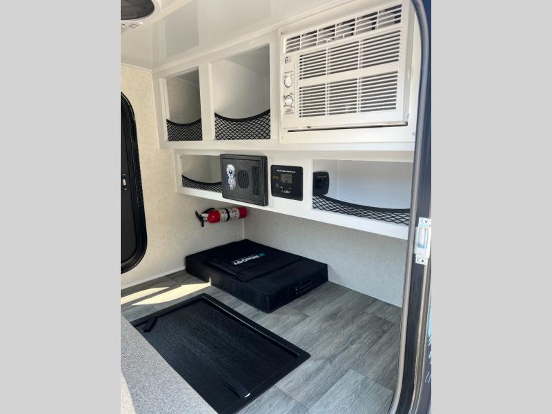 Whether you have a car, small SUV or a larger vehicle, you will be able to tow this Little Buggy off-road and to a local campground, the choices is yours! There is sleeping space for two adults on a memory foam mattress, and storage for your necessities with three cubbies and four enclosed cabinets inside, all built with premium birch wood. More storage can be found in the front exterior box made of steel for either your clothing, dry food or gear. The roof rack allows you to add your rooftop tent, and/or carry your paddle boards, bikes or more camping gear. And the outside galley gives you a place to make meals, place your cooler on the lock-in/lock-out cooler/freezer, and store dishes in the enclosed cabinets, and kitchen cabinets.