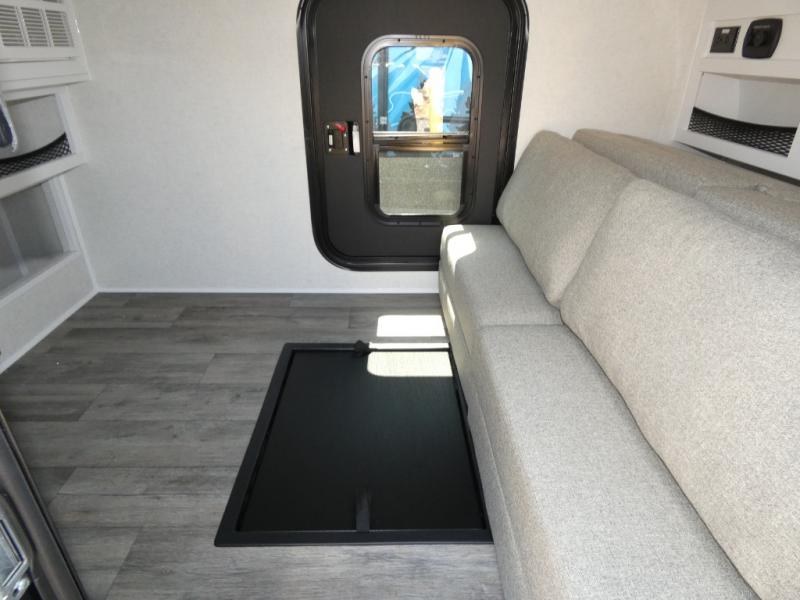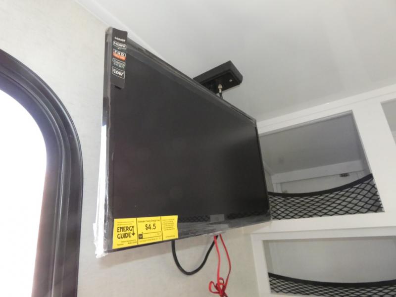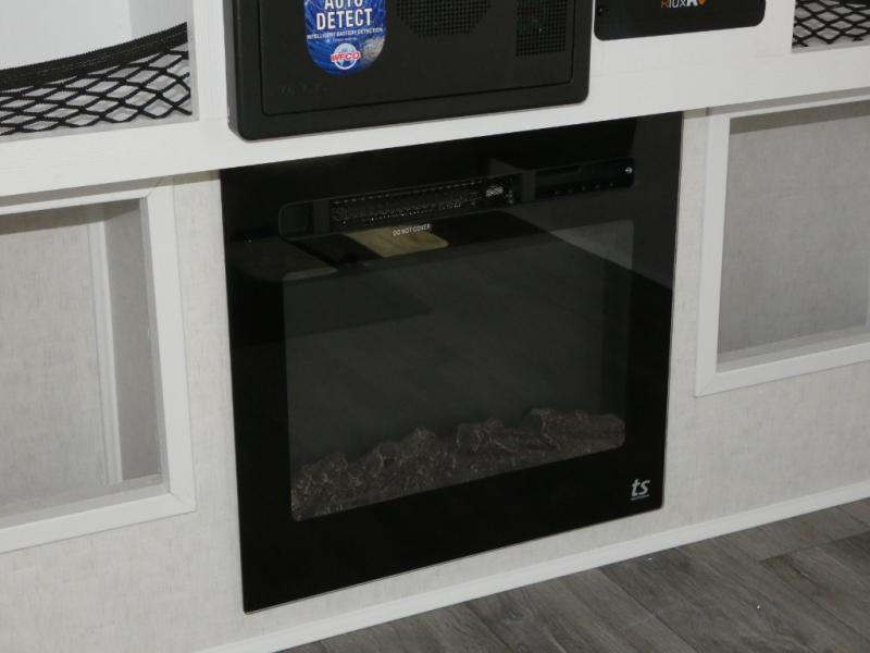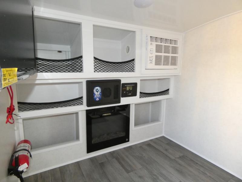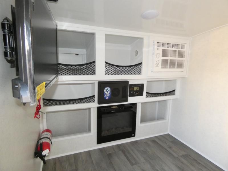 Take this Little Buggy wherever the road leads you! There is sleeping space for two adults on a comfy 6" memory foam mattress, and storage for your necessities with three cubbies and four enclosed cabinets inside, all built with premium birch wood. More storage can be found in the front exterior box made of steel for either your clothing, dry food, or gear. The mattress easily converts to a sofa which is perfect for daytime relaxing. Also inside, you will enjoy a fireplace to warm you right up on those cool summer evenings or crisp, fall mornings, and the HD TV will entertain you when the weather keeps you indoors. The roof top carriage rack allows you to carry your paddle boards, bikes, or more camping gear!