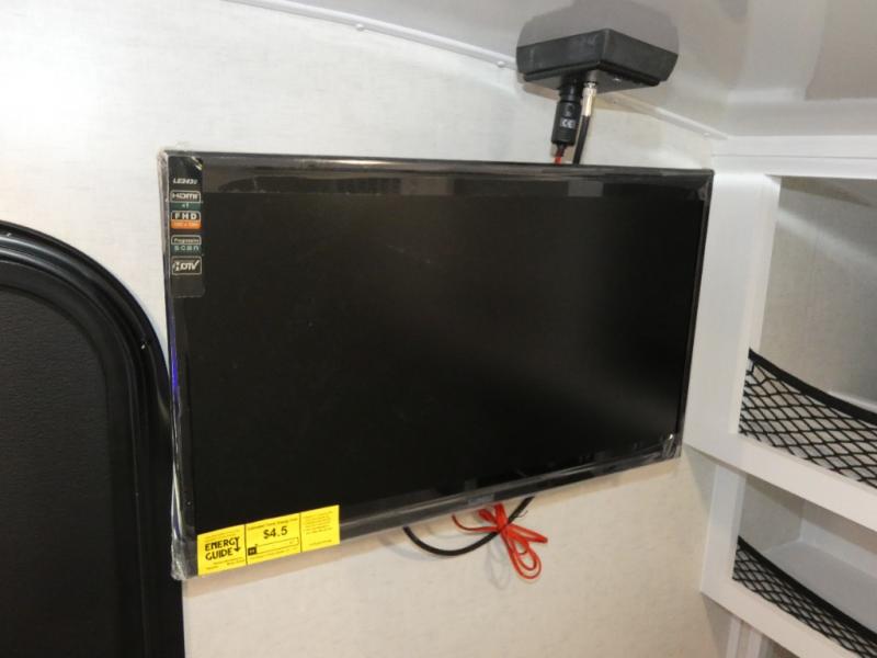 Take this Little Buggy wherever the road leads you! There is sleeping space for two adults on a comfy 6" memory foam mattress, and storage for your necessities with three cubbies and four enclosed cabinets inside, all built with premium birch wood. More storage can be found in the front exterior box made of steel for either your clothing, dry food, or gear. The mattress easily converts to a sofa which is perfect for daytime relaxing. Also inside, you will enjoy a fireplace to warm you right up on those cool summer evenings or crisp, fall mornings, and the HD TV will entertain you when the weather keeps you indoors. The roof top carriage rack allows you to carry your paddle boards, bikes, or more camping gear!