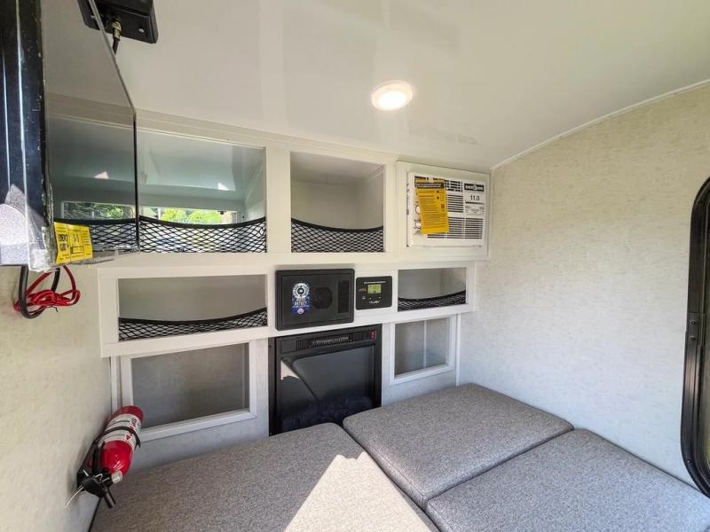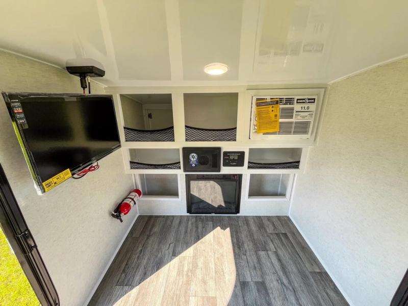 Take this Little Buggy wherever the road leads you! There is sleeping space for two adults on a comfy 6" memory foam mattress, and storage for your necessities with three cubbies and four enclosed cabinets inside, all built with premium birch wood. More storage can be found in the front exterior box made of steel for either your clothing, dry food, or gear. The mattress easily converts to a sofa which is perfect for daytime relaxing. Also inside, you will enjoy a fireplace to warm you right up on those cool summer evenings or crisp, fall mornings, and the HD TV will entertain you when the weather keeps you indoors. The roof top carriage rack allows you to carry your paddle boards, bikes, or more camping gear, or you can add the optional rooftop tent which will allow you to sleep two more!