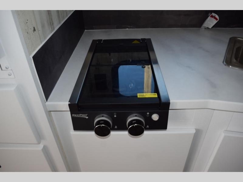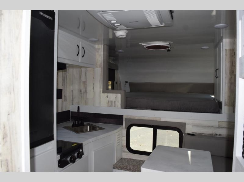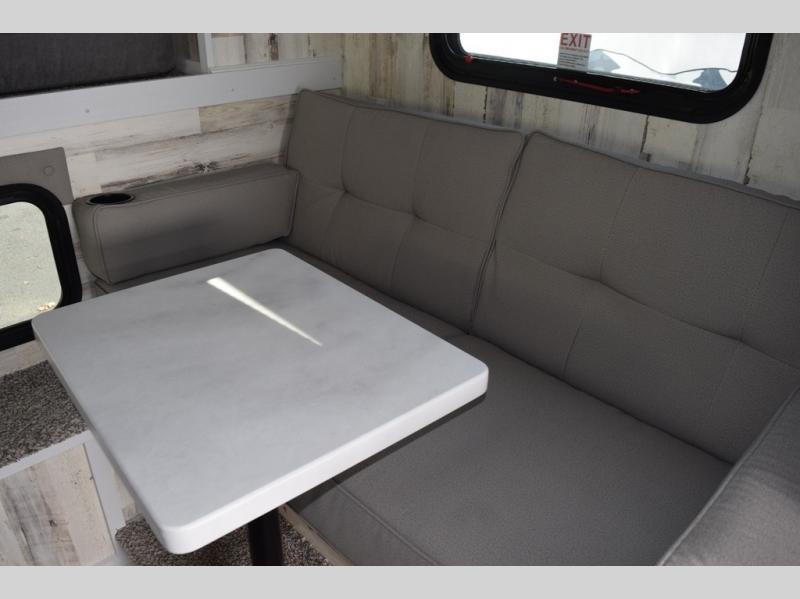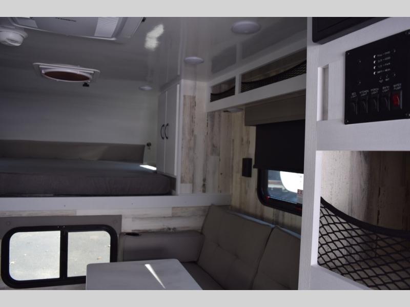 Expand your horizons in this spacious truck camper! A dinette bed will provide a place to relax after you've made lunch on the two burner stove, and this space can double as sleeping space for a guest. And you're sure to get a great night's rest on the front bed. The 2-way Max Air vent will provide great ventilation, and you can choose to add the optional 13.5 BTU rooftop A/C to cool you off even further. And you are sure to appreciate the tankless on-demand water heater will provide hot water when you need it!