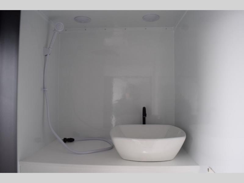 The Modern Buggy truck camper is constructed with Azdel walls, roof and ceiling for added durability, plus they are off-grid ready with torsion axles, all-terrain tires, and optional solar power. You will love the stainless steel sink with a faucet, and the USB stations will keep your electronics powered up. There is an outside spray port shower box outside, and you can choose an optional power jack for hassle-free set up!
