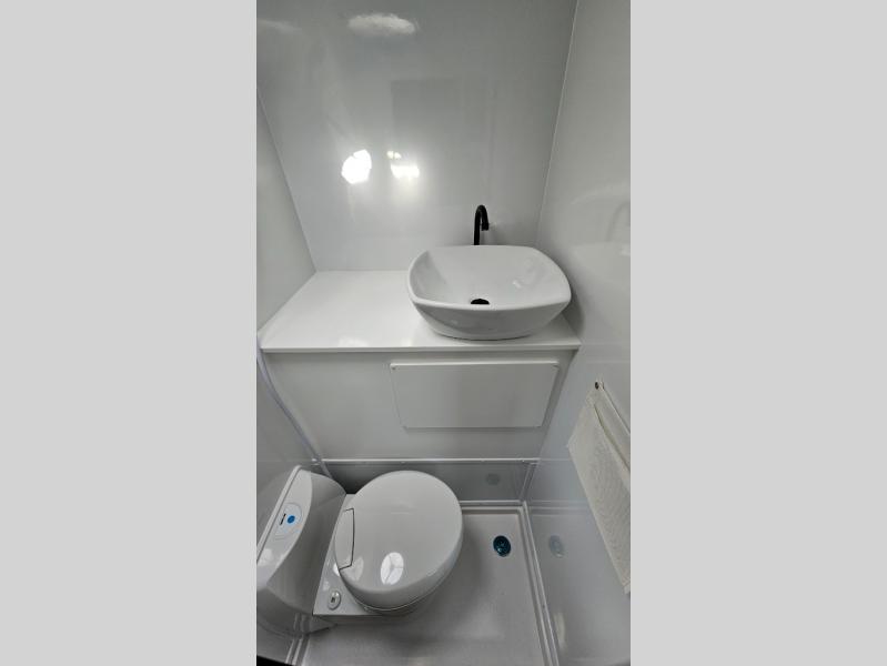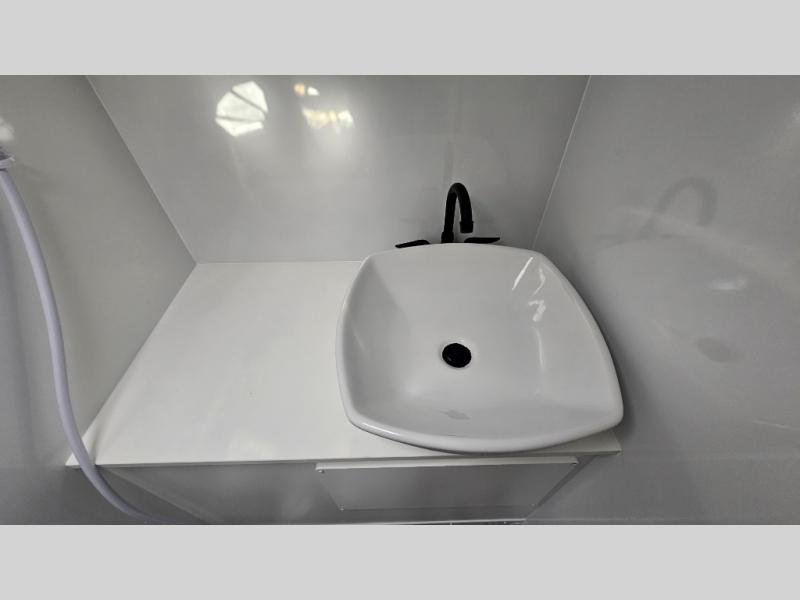 The Modern Buggy truck camper is constructed with Azdel walls, roof and ceiling for added durability, plus they are off-grid ready with torsion axles, all-terrain tires, and optional solar power. You will love the stainless steel sink with a faucet, and the USB stations will keep your electronics powered up. There is an outside spray port shower box outside, and you can choose an optional power jack for hassle-free set up!