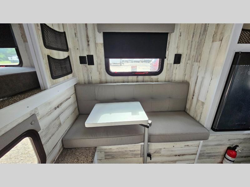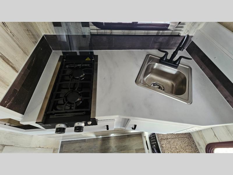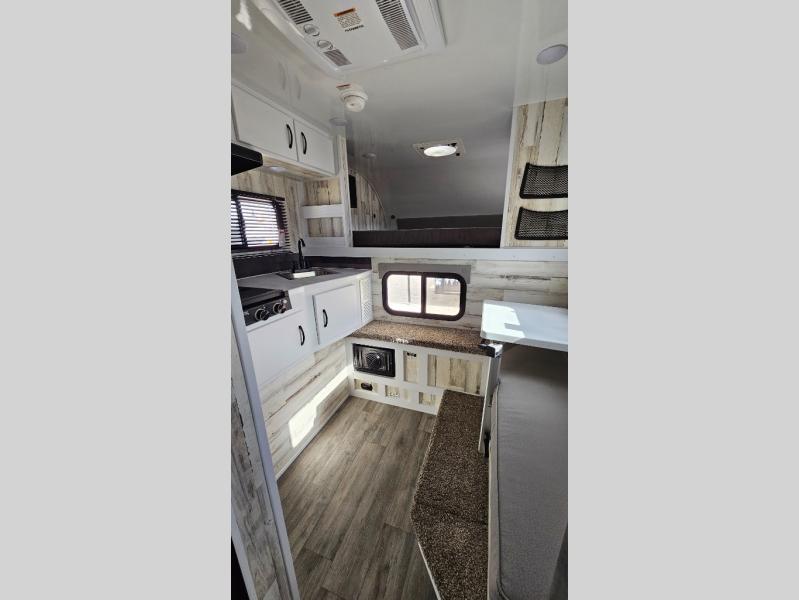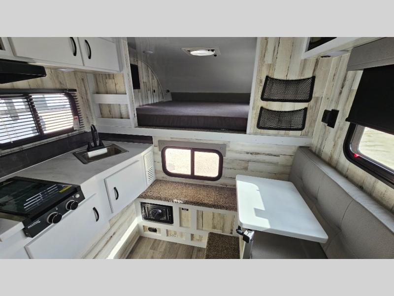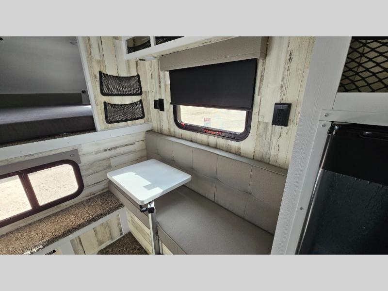 You can see and do it all in this truck camper! A 25" x 80" dinette will provide a place to dine after you've made lunch on the two burner stove with a cover, and this space can double as sleeping space for a guest. And you're sure to get a great night's rest on the 60" x 80" queen-size bed. The 2-way Max Air vent will provide great ventilation, and you can choose to add the optional 13.5 BTU A/C to cool you off even further. You are sure to appreciate tankless on-demand water heater will provide hot water when you need it, and you can choose the 200W solar upgrade for off-grid capabilities!