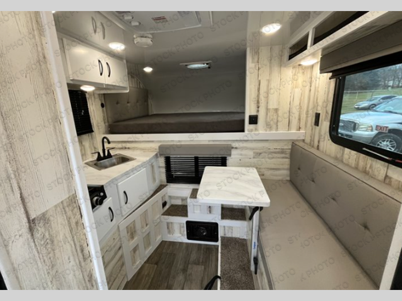 You can see and do it all in this truck camper! A 25" x 80" dinette will provide a place to dine after you've made lunch on the two burner stove with a cover, and this space can double as sleeping space for a guest. And you're sure to get a great night's rest on the 60" x 80" queen-size bed. The 2-way Max Air vent will provide great ventilation, and you can choose to add the optional 13.5 BTU A/C to cool you off even further. You are sure to appreciate tankless on-demand water heater will provide hot water when you need it, and you can choose the 200W solar upgrade for off-grid capabilities!
