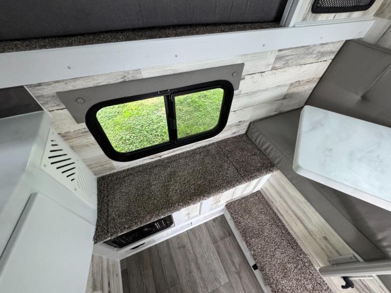 You can see and do it all in this truck camper! A 25" x 80" dinette will provide a place to dine after you've made lunch on the two burner stove with a cover, and this space can double as sleeping space for a guest. And you're sure to get a great night's rest on the 60" x 80" queen-size bed. The 2-way Max Air vent will provide great ventilation, and you can choose to add the optional 13.5 BTU A/C to cool you off even further. You are sure to appreciate tankless on-demand water heater will provide hot water when you need it, and you can choose the 200W solar upgrade for off-grid capabilities!