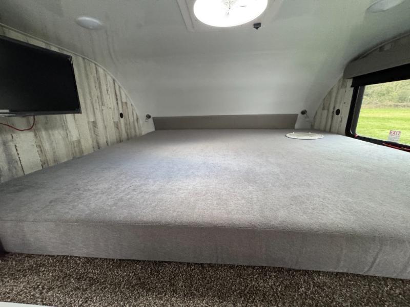 The Modern Buggy truck camper is constructed with Azdel walls, roof and ceiling for added durability, plus they are off-grid ready with torsion axles, all-terrain tires, and optional solar power. You will love the stainless steel sink with a faucet, and the USB stations will keep your electronics powered up. There is an outside spray port shower box outside, and you can choose an optional power jack for hassle-free set up!
