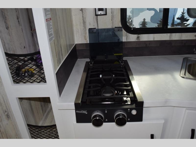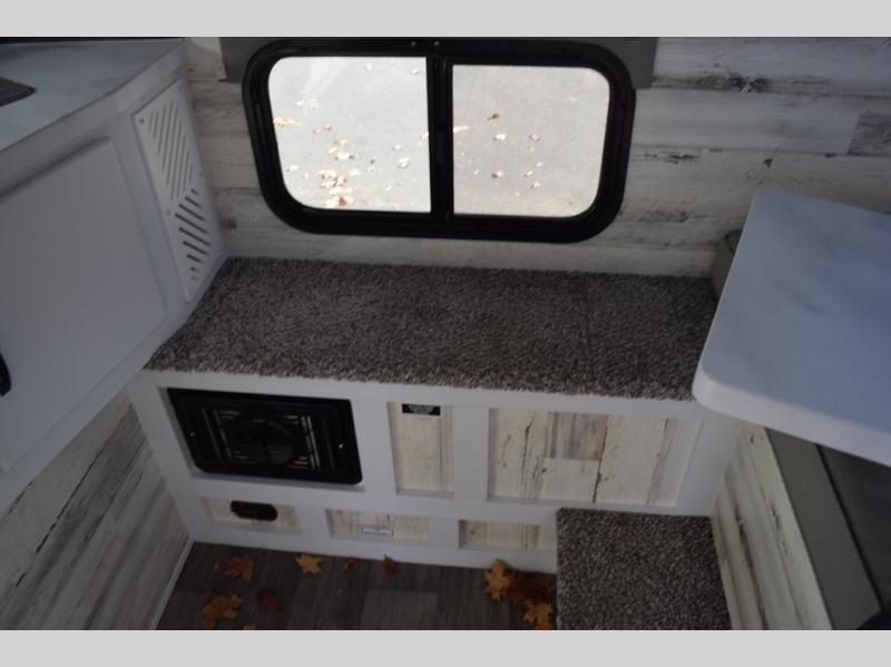 You can see and do it all in this truck camper! A 25" x 80" dinette will provide a place to dine after you've made lunch on the two burner stove with a cover, and this space can double as sleeping space for a guest. And you're sure to get a great night's rest on the 60" x 80" queen-size bed. The 2-way Max Air vent will provide great ventilation, and you can choose to add the optional 13.5 BTU A/C to cool you off even further. You are sure to appreciate tankless on-demand water heater will provide hot water when you need it, and you can choose the 200W solar upgrade for off-grid capabilities!