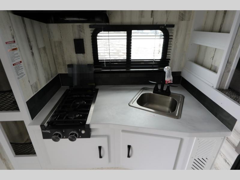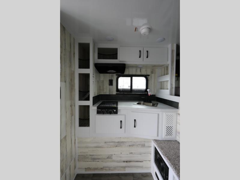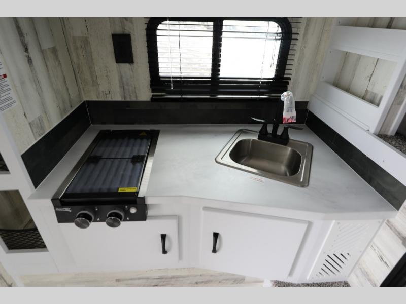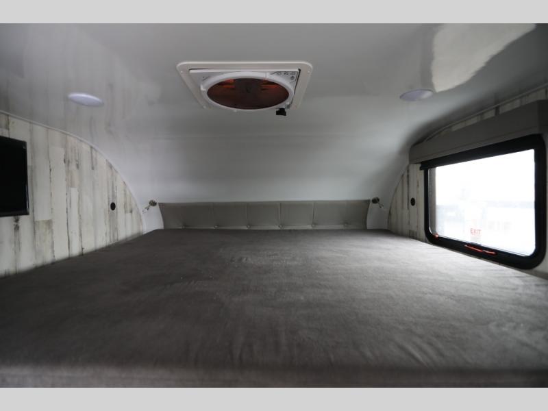 The Modern Buggy truck camper is constructed with Azdel walls, roof and ceiling for added durability, plus they are off-grid ready with torsion axles, all-terrain tires, and optional solar power. You will love the stainless steel sink with a faucet, and the USB stations will keep your electronics powered up. There is an outside spray port shower box outside, and you can choose an optional power jack for hassle-free set up!