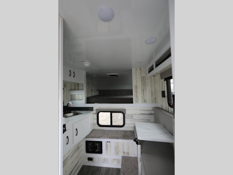 You can see and do it all in this truck camper! A 25" x 80" dinette will provide a place to dine after you've made lunch on the two burner stove with a cover, and this space can double as sleeping space for a guest. And you're sure to get a great night's rest on the 60" x 80" queen-size bed. The 2-way Max Air vent will provide great ventilation, and you can choose to add the optional 13.5 BTU A/C to cool you off even further. You are sure to appreciate tankless on-demand water heater will provide hot water when you need it, and you can choose the 200W solar upgrade for off-grid capabilities!