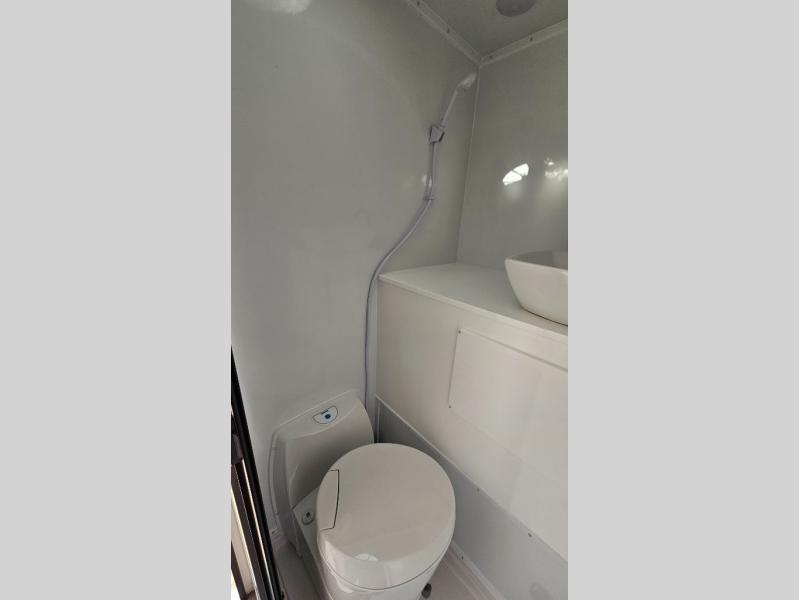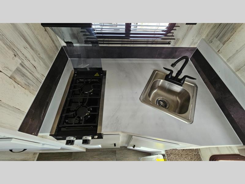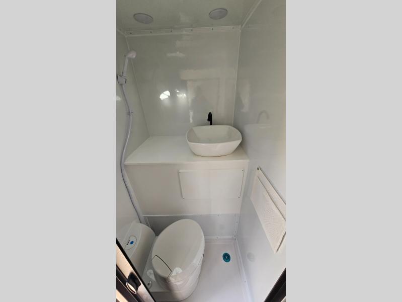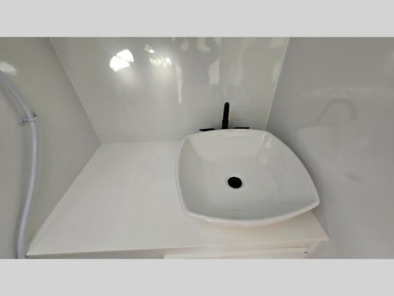The Modern Buggy truck camper is constructed with Azdel walls, roof and ceiling for added durability, plus they are off-grid ready with torsion axles, all-terrain tires, and optional solar power. You will love the stainless steel sink with a faucet, and the USB stations will keep your electronics powered up. There is an outside spray port shower box outside, and you can choose an optional power jack for hassle-free set up!