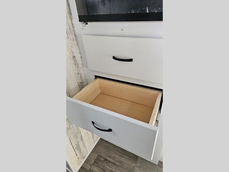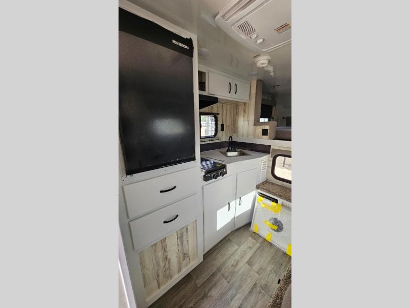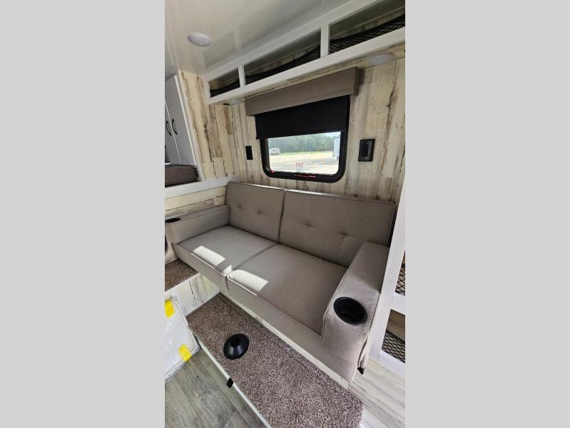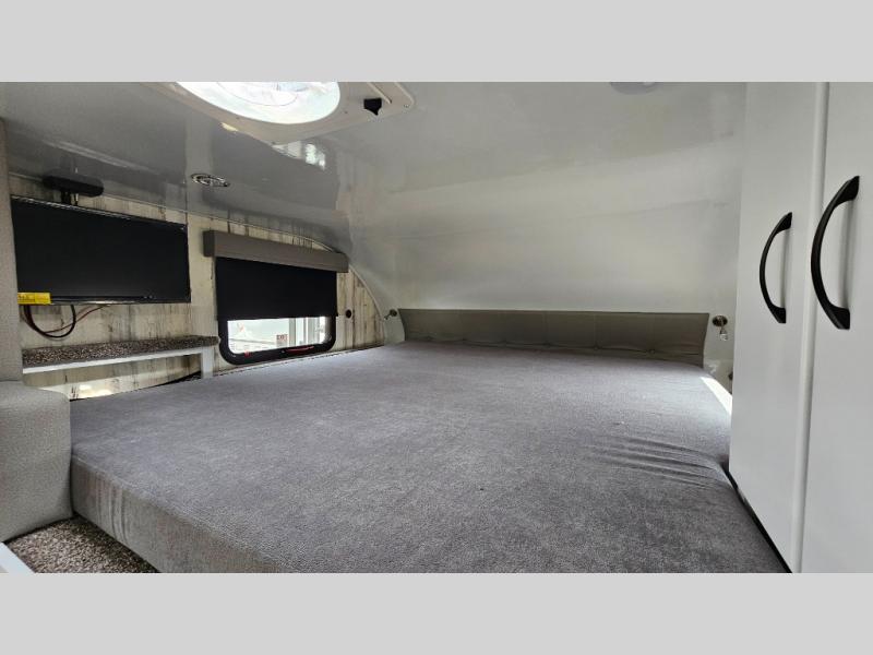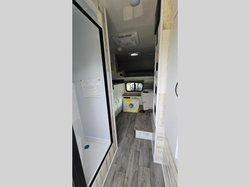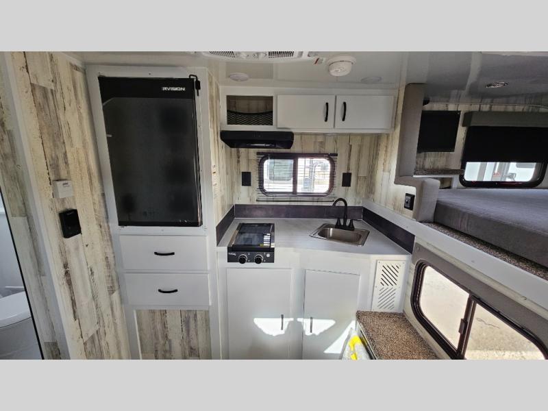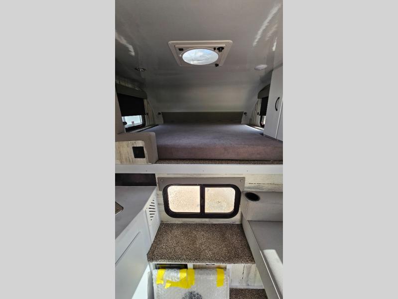 Expand your horizons in this spacious truck camper! A dinette bed will provide a place to relax after you've made lunch on the two burner stove, and this space can double as sleeping space for a guest. And you're sure to get a great night's rest on the front bed. The 2-way Max Air vent will provide great ventilation, and you can choose to add the optional 13.5 BTU rooftop A/C to cool you off even further. And you are sure to appreciate the tankless on-demand water heater will provide hot water when you need it!