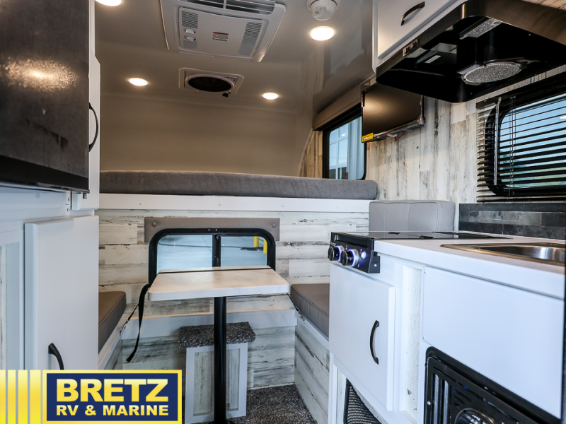 QUEEN SIZE BED, TWO BURNER COOKTOP, & FRONT WINDOW!Modern Buggy truck camper TC9 highlights: