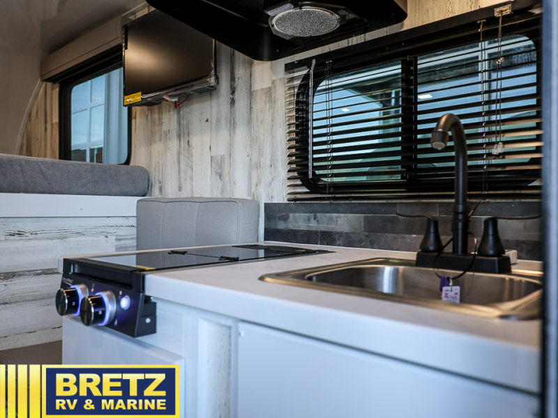 The Modern Buggy truck camper is constructed with Azdel walls, roof and ceiling for added durability, plus they are off-grid ready with torsion axles, all-terrain tires, and optional solar power. You will love the stainless steel sink with a faucet, and the USB stations will keep your electronics powered up. There is an outside spray port shower box outside, and you can choose an optional power jack for hassle-free set up!