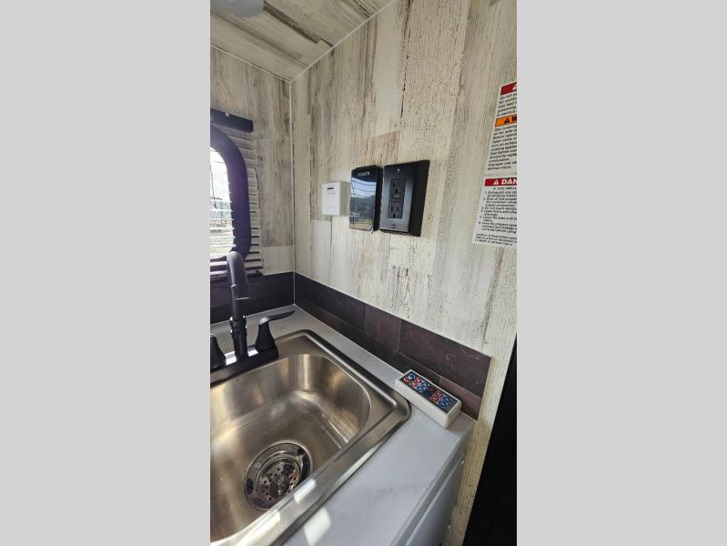 The Modern Buggy truck camper is constructed with Azdel walls, roof and ceiling for added durability, plus they are off-grid ready with torsion axles, all-terrain tires, and optional solar power. You will love the stainless steel sink with a faucet, and the USB stations will keep your electronics powered up. There is an outside spray port shower box outside, and you can choose an optional power jack for hassle-free set up!