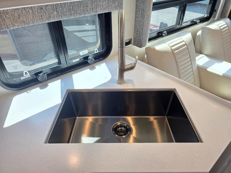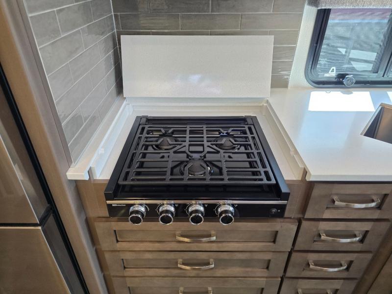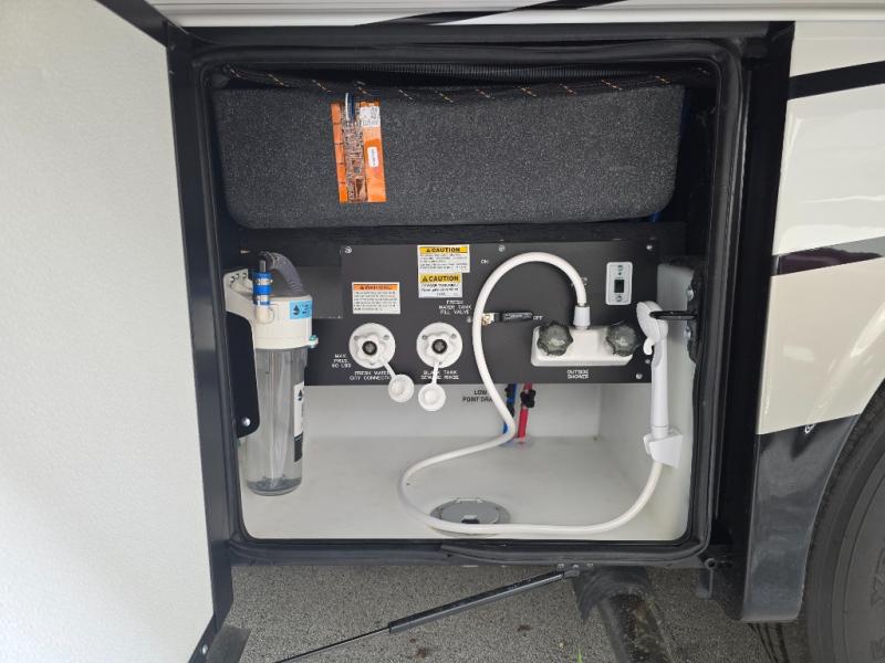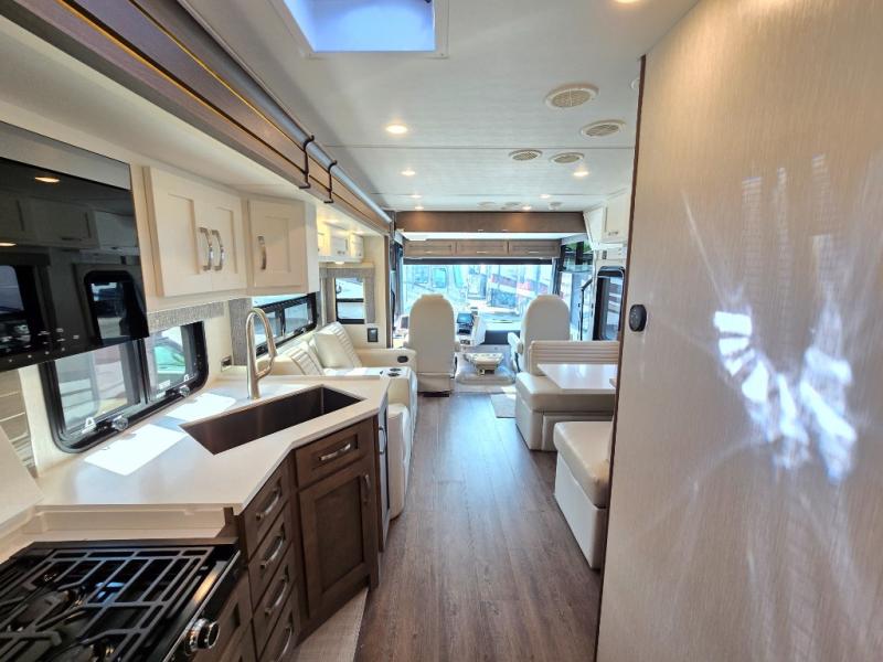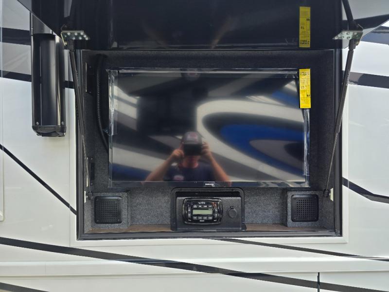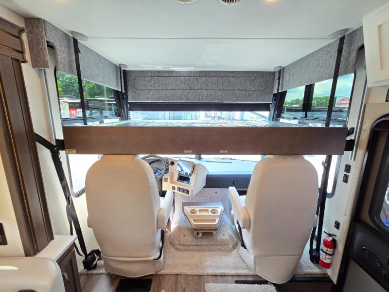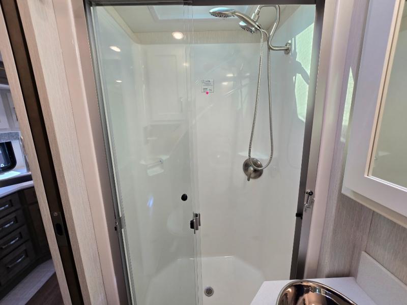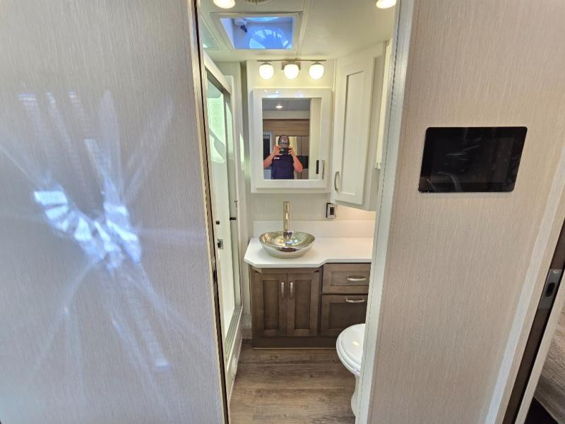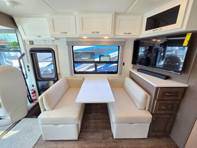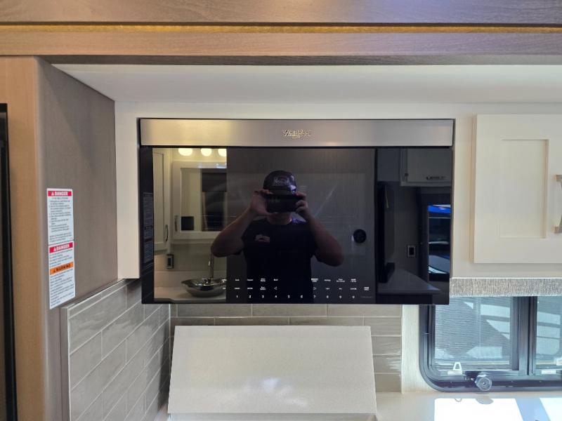 Make each trip luxurious in this spacious coach that can sleep five to six people each night. If you're needing additional sleeping space, just choose the optional drop-down bunk above the cockpit. You will wake up feeling refreshed after sleeping on the king bed slide out, and your guests can put away their bedding after sleeping on the sofa comfort lounge and booth dinette. Breakfast can be made on the three burner cooktop or in the 30" convection microwave. You will appreciate the pantry and a Norcold 10 cu. ft. refrigerator for your food. This model also includes a shirt wardrobe in the bedroom, along with a dresser so you can bring along your favorite outfits. And you'll never go bored with Samsung LED TV's in the bedroom and living area!