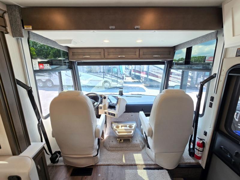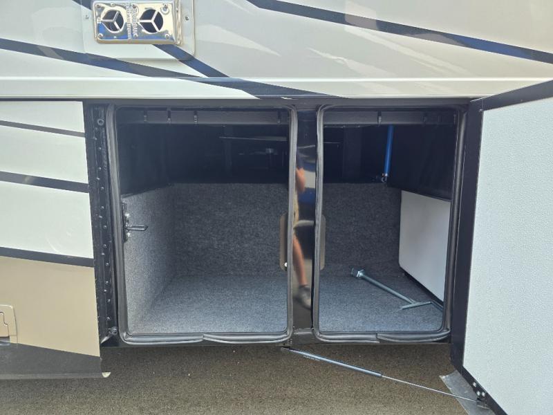 Each Bay Star Class A gas motorhome by Newmar delivers a smooth ride thanks to the standard electronic stability control, along with the 7.3-liter V8 engine with 335 HP and 468 lb./ft. of torque. The exterior is sure to turn heads with its full-paint Masterpiece Finish and new graphics packages, plus you'll have three interior decor choices and three wood choices to truly make the coach your own. Each model includes Williamsburg furniture, woven material in the slide outs, luxurious vinyl plank flooring, polished solid surface countertops in the kitchen, plus many more comforts. Head outside to find lights in the storage compartments, a 5.5kW Cummins Onan generator with remote switch, and hydraulic leveling jacks with a Bluetooth compatible touch pad for set up easy as 1-2-3! You can further customize your coach with the many options that are offered!