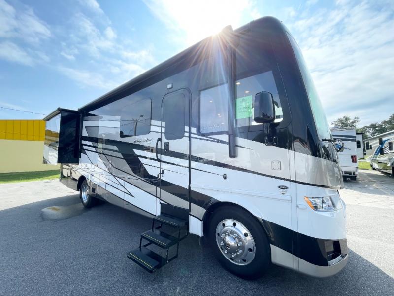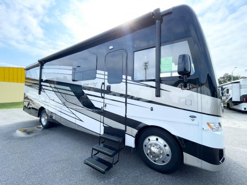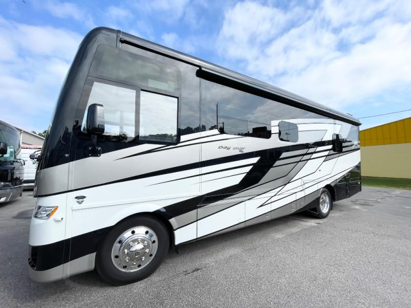 Each Bay Star Class A gas motorhome by Newmar delivers a smooth ride thanks to the standard electronic stability control, along with the 7.3-liter V8 engine with 335 HP and 468 lb./ft. of torque. The exterior is sure to turn heads with its full-paint Masterpiece Finish and new graphics packages, plus you'll have three interior decor choices and three wood choices to truly make the coach your own. Each model includes Williamsburg furniture, woven material in the slide outs, luxurious vinyl plank flooring, polished solid surface countertops in the kitchen, plus many more comforts. Head outside to find lights in the storage compartments, a 5.5kW Cummins Onan generator with remote switch, and hydraulic leveling jacks with a Bluetooth compatible touch pad for set up easy as 1-2-3! You can further customize your coach with the many options that are offered!