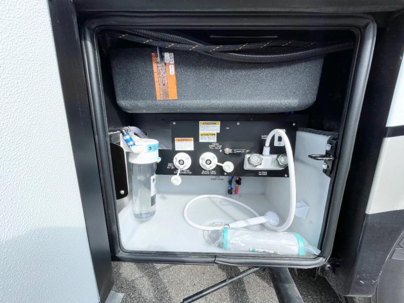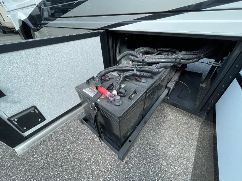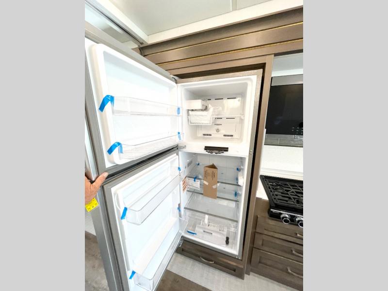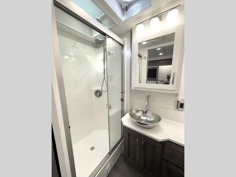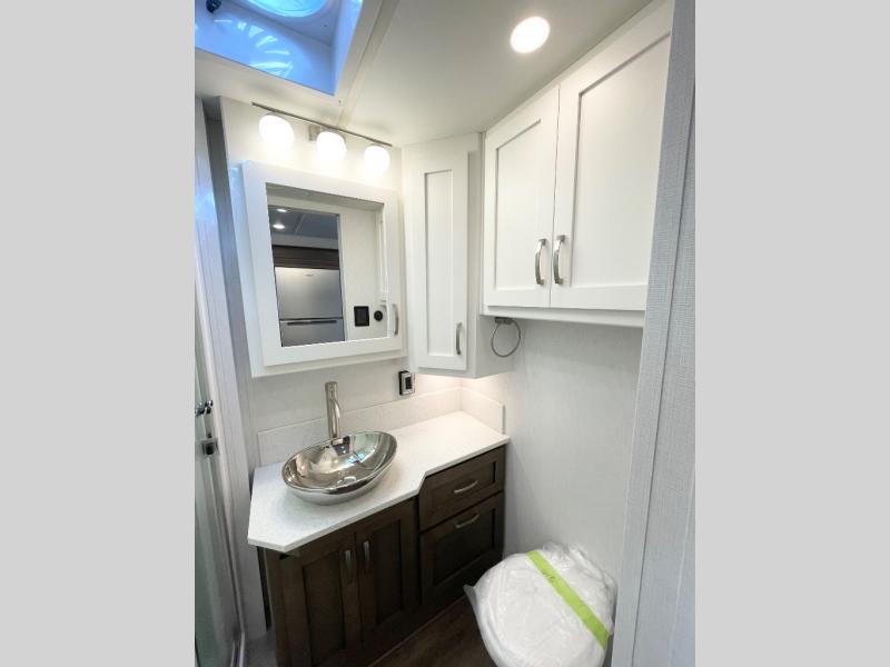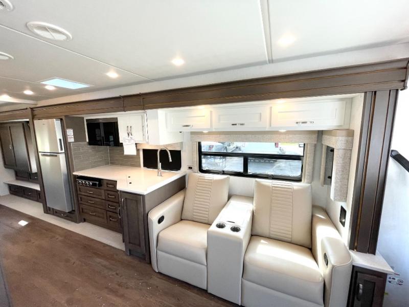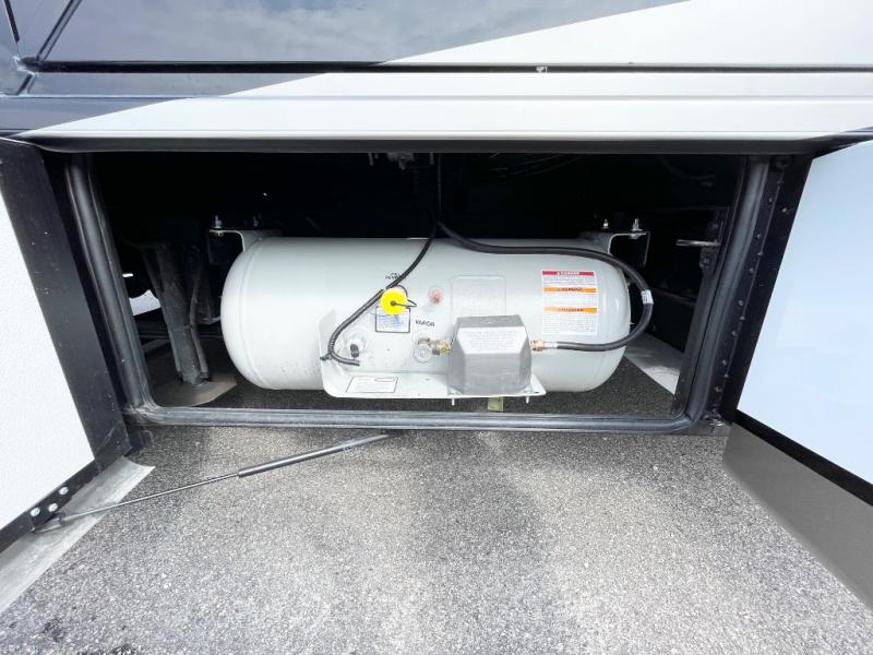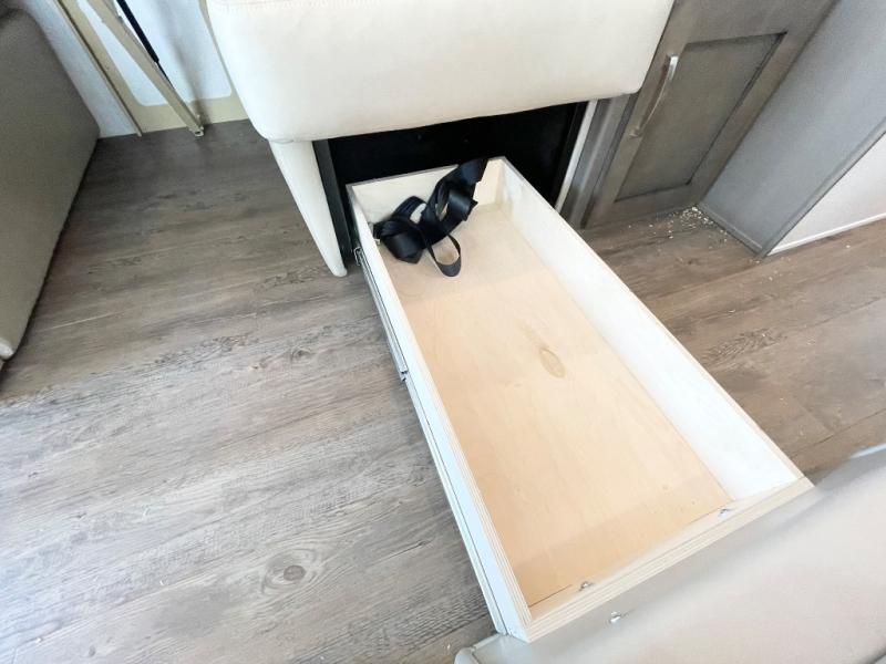 Make each trip luxurious in this spacious coach that can sleep five to six people each night. If you're needing additional sleeping space, just choose the optional drop-down bunk above the cockpit. You will wake up feeling refreshed after sleeping on the king bed slide out, and your guests can put away their bedding after sleeping on the sofa comfort lounge and booth dinette. Breakfast can be made on the three burner cooktop or in the 30" convection microwave. You will appreciate the pantry and a Norcold 10 cu. ft. refrigerator for your food. This model also includes a shirt wardrobe in the bedroom, along with a dresser so you can bring along your favorite outfits. And you'll never go bored with Samsung LED TV's in the bedroom and living area!