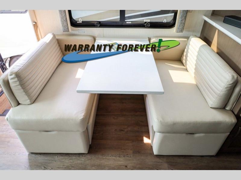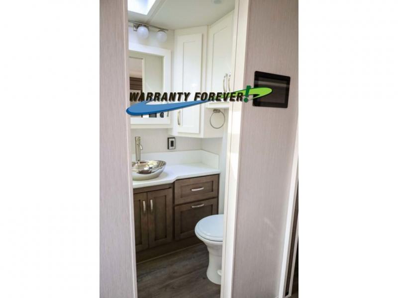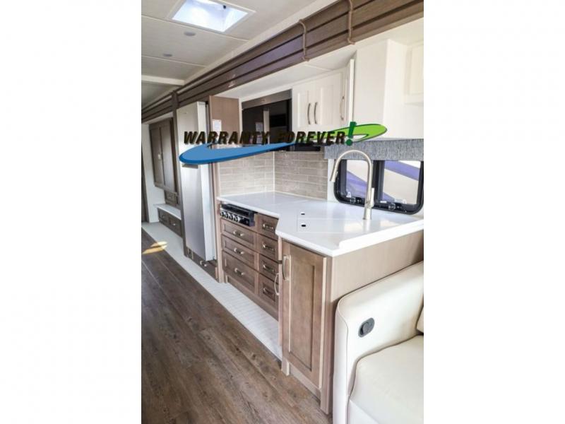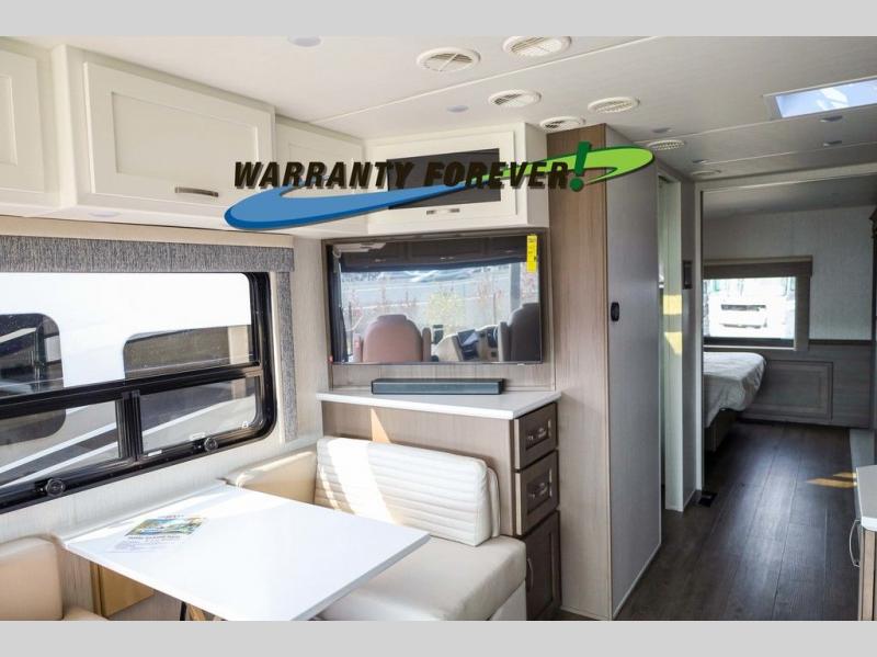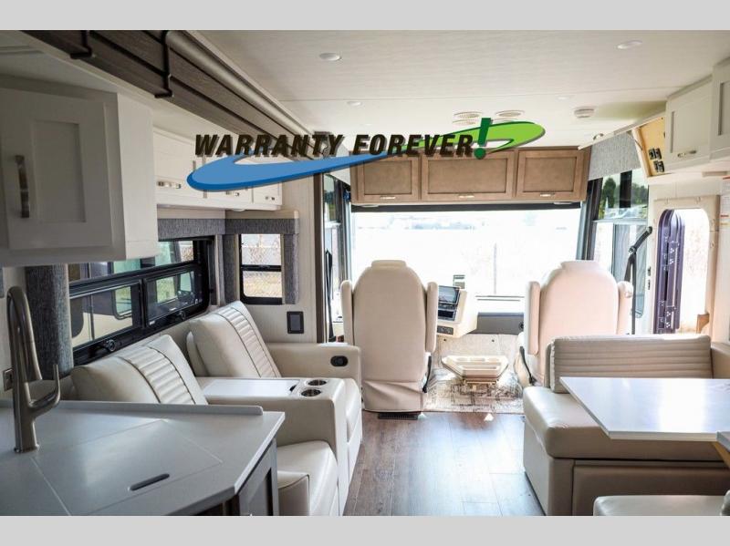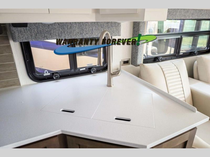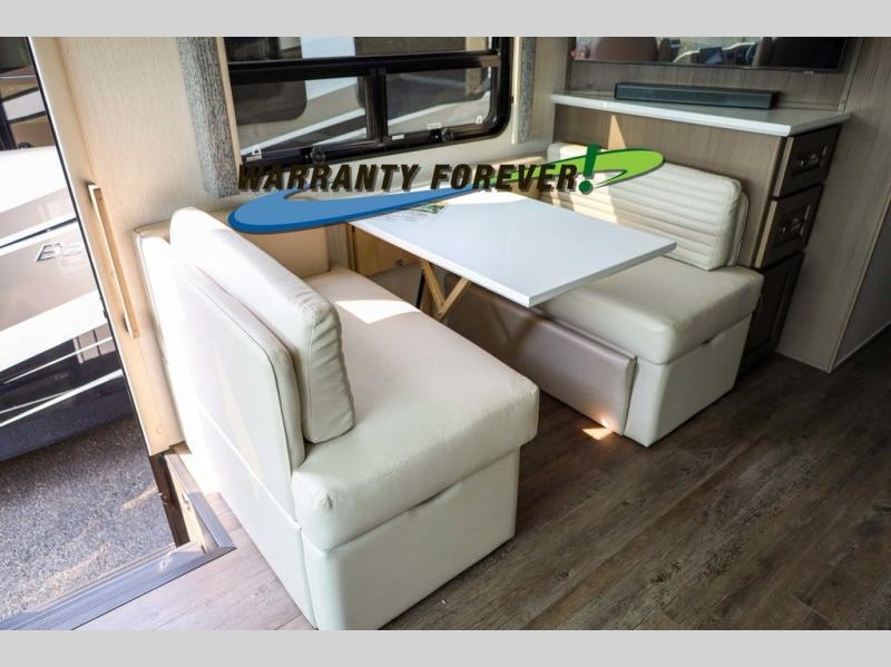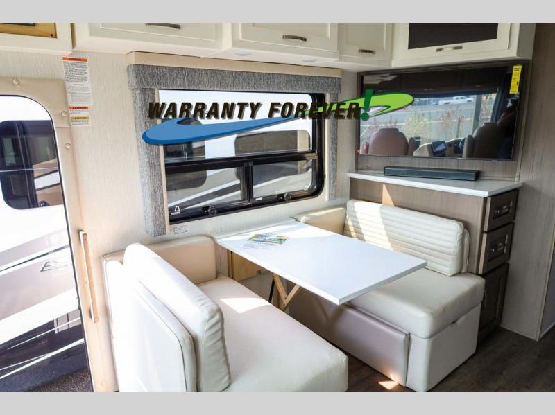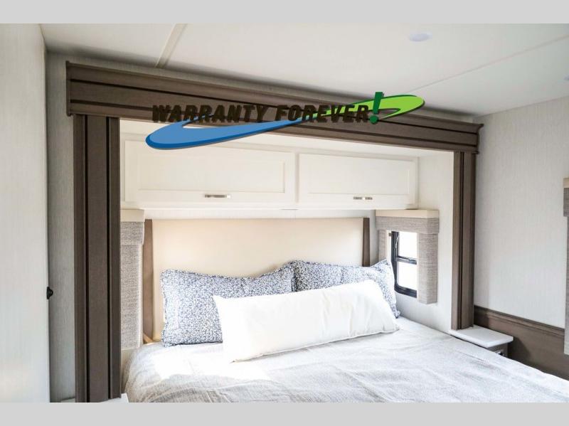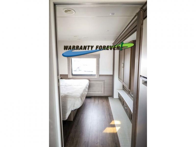 Make each trip luxurious in this spacious coach that can sleep five to six people each night. If you're needing additional sleeping space, just choose the optional drop-down bunk above the cockpit. You will wake up feeling refreshed after sleeping on the king bed slide out, and your guests can put away their bedding after sleeping on the sofa comfort lounge and booth dinette. Breakfast can be made on the three burner cooktop or in the 30" convection microwave. You will appreciate the pantry and a Norcold 10 cu. ft. refrigerator for your food. This model also includes a shirt wardrobe in the bedroom, along with a dresser so you can bring along your favorite outfits. And you'll never go bored with Samsung LED TV's in the bedroom and living area!