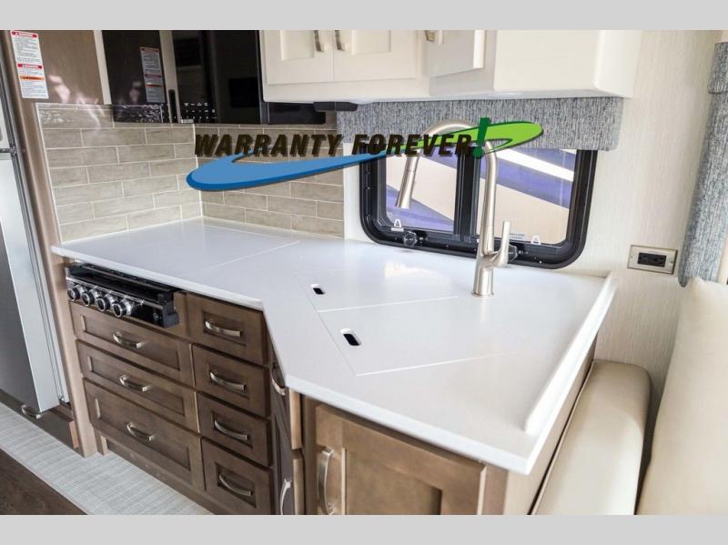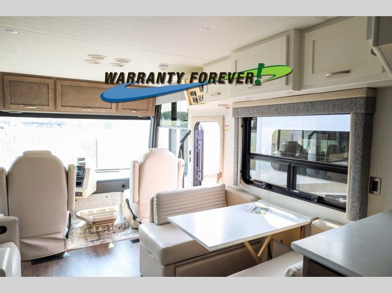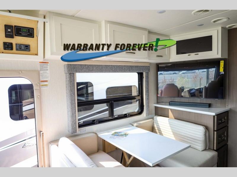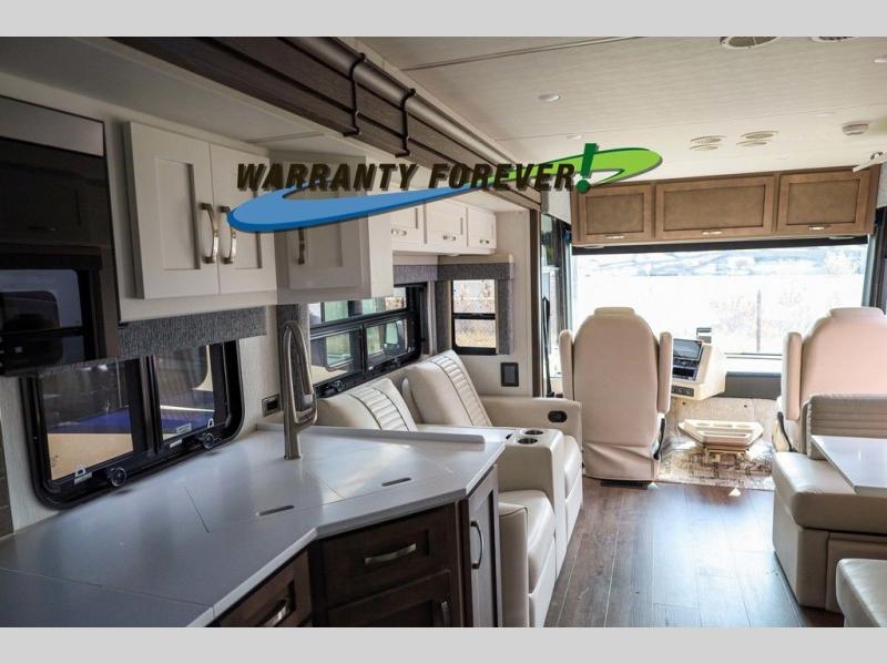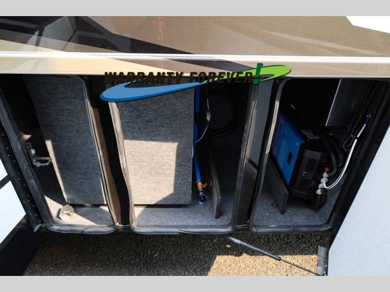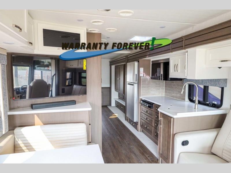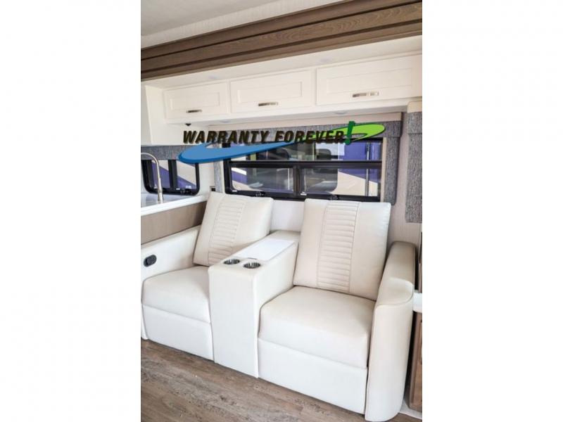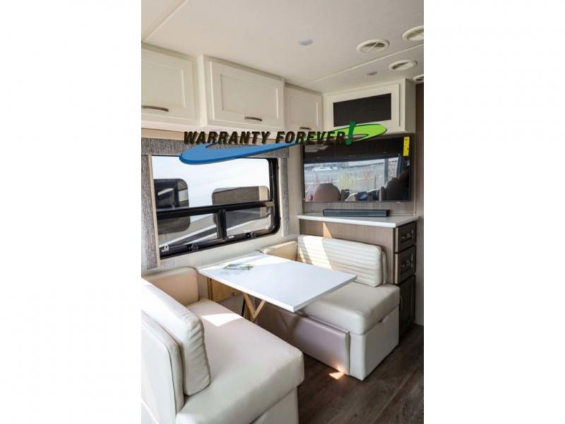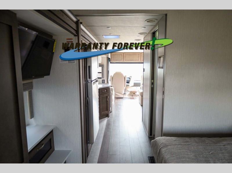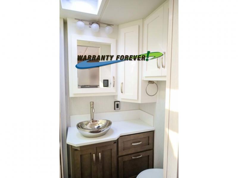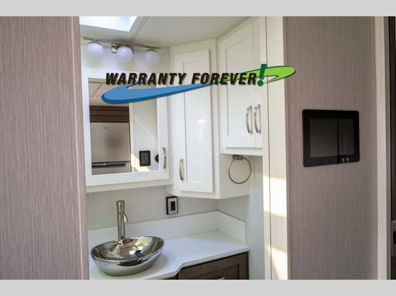 Make each trip luxurious in this spacious coach that can sleep five to six people each night. If you're needing additional sleeping space, just choose the optional drop-down bunk above the cockpit. You will wake up feeling refreshed after sleeping on the king bed slide out, and your guests can put away their bedding after sleeping on the sofa comfort lounge and booth dinette. Breakfast can be made on the three burner cooktop or in the 30" convection microwave. You will appreciate the pantry and a Norcold 10 cu. ft. refrigerator for your food. This model also includes a shirt wardrobe in the bedroom, along with a dresser so you can bring along your favorite outfits. And you'll never go bored with Samsung LED TV's in the bedroom and living area!