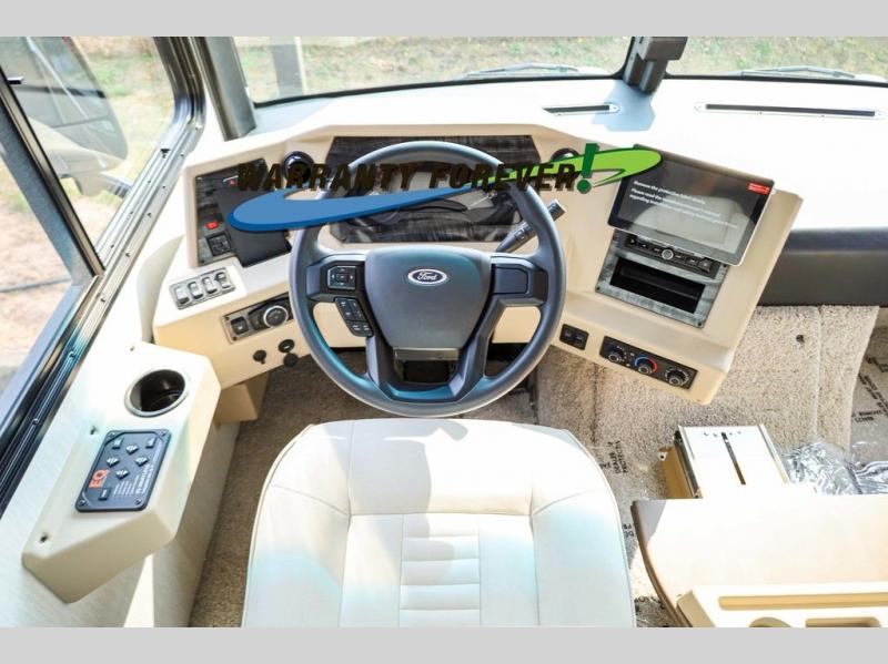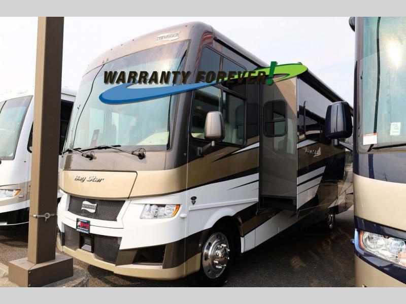 Each Bay Star Class A gas motorhome by Newmar delivers a smooth ride thanks to the standard electronic stability control, along with the 7.3-liter V8 engine with 335 HP and 468 lb./ft. of torque. The exterior is sure to turn heads with its full-paint Masterpiece Finish and new graphics packages, plus you'll have three interior decor choices and three wood choices to truly make the coach your own. Each model includes Williamsburg furniture, woven material in the slide outs, luxurious vinyl plank flooring, polished solid surface countertops in the kitchen, plus many more comforts. Head outside to find lights in the storage compartments, a 5.5kW Cummins Onan generator with remote switch, and hydraulic leveling jacks with a Bluetooth compatible touch pad for set up easy as 1-2-3! You can further customize your coach with the many options that are offered!
