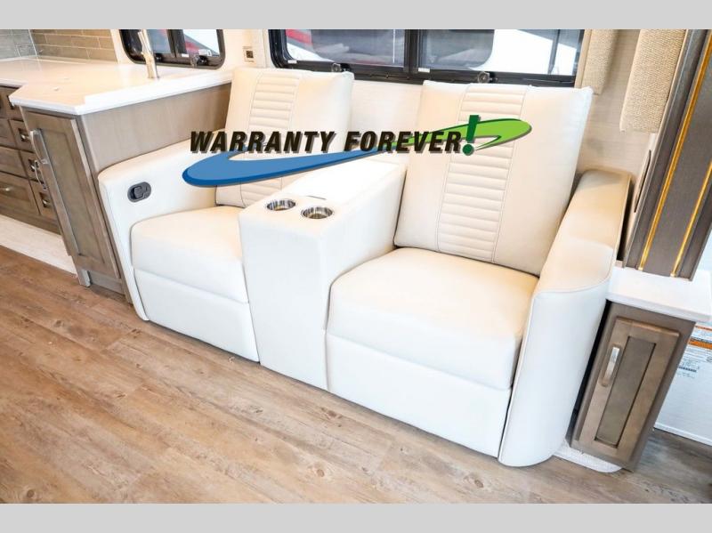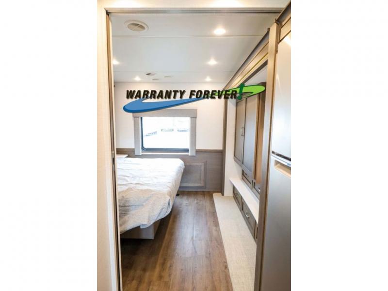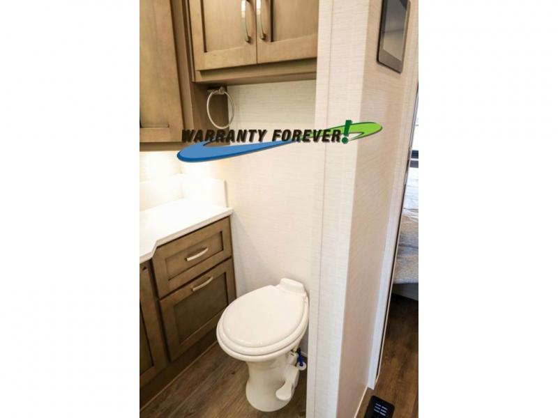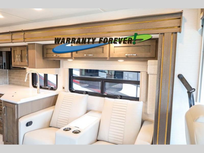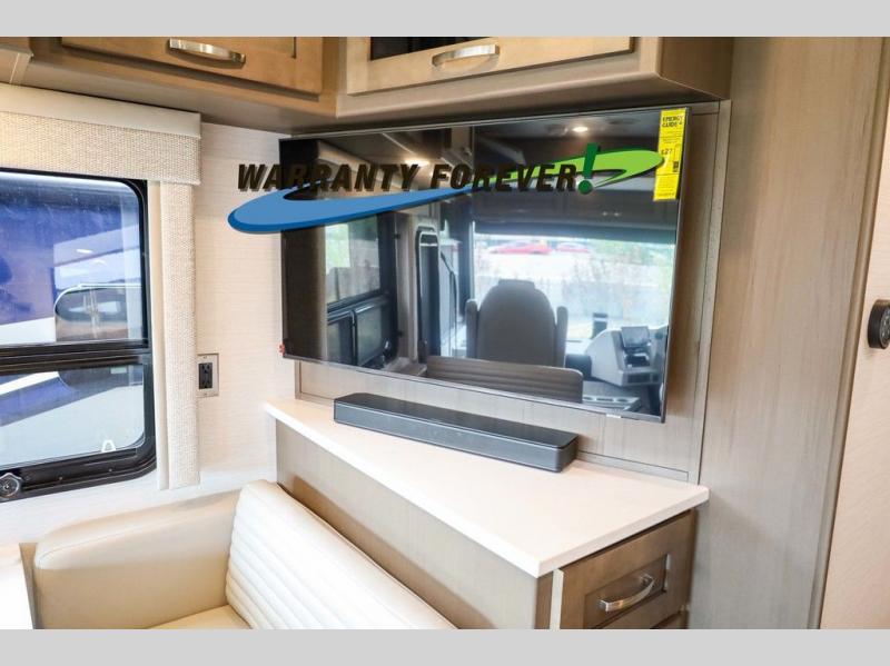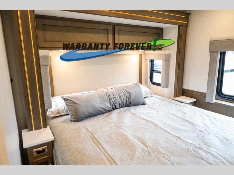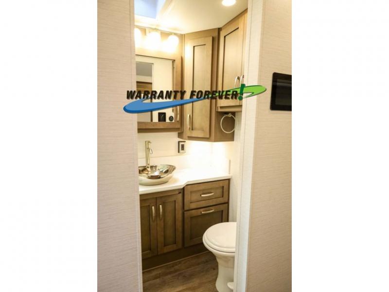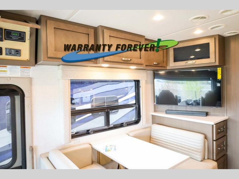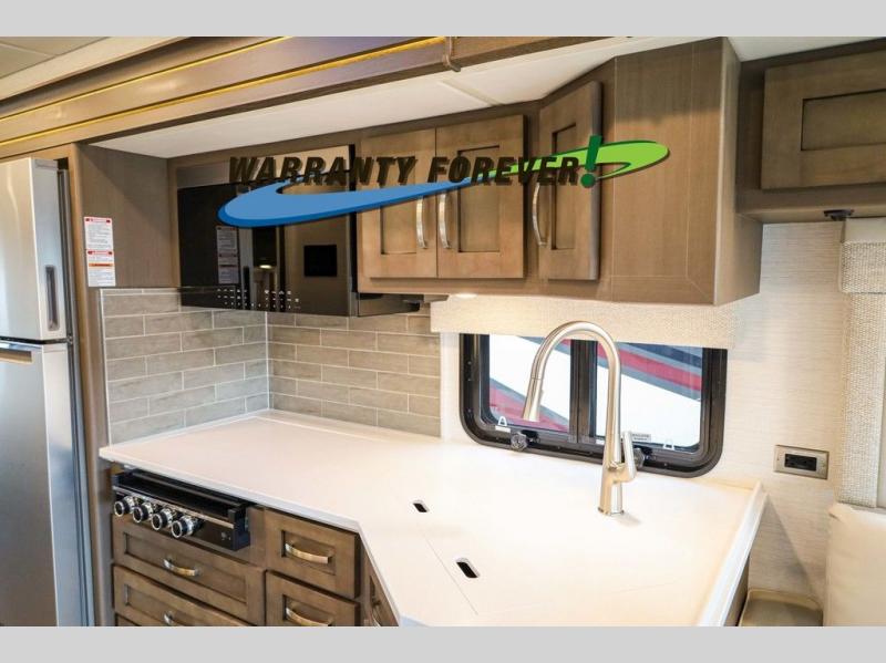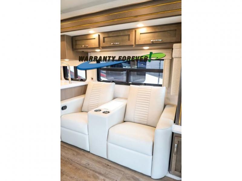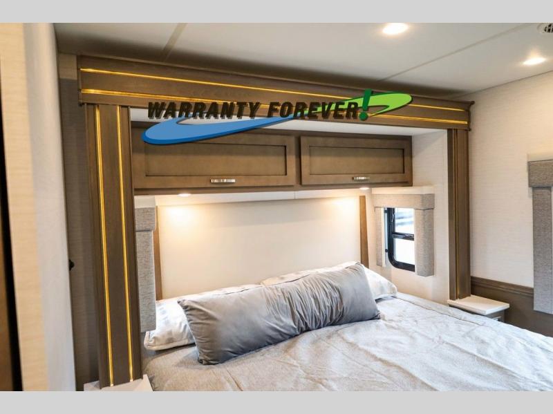 Make each trip luxurious in this spacious coach that can sleep five to six people each night. If you're needing additional sleeping space, just choose the optional drop-down bunk above the cockpit. You will wake up feeling refreshed after sleeping on the king bed slide out, and your guests can put away their bedding after sleeping on the sofa comfort lounge and booth dinette. Breakfast can be made on the three burner cooktop or in the 30" convection microwave. You will appreciate the pantry and a Norcold 10 cu. ft. refrigerator for your food. This model also includes a shirt wardrobe in the bedroom, along with a dresser so you can bring along your favorite outfits. And you'll never go bored with Samsung LED TV's in the bedroom and living area!