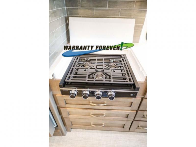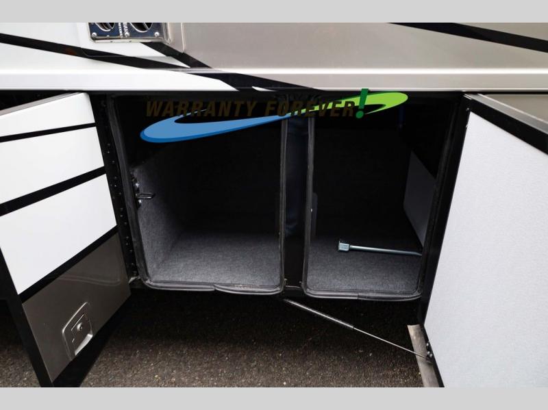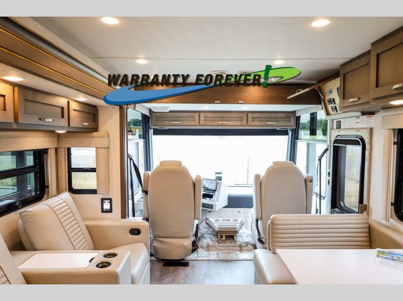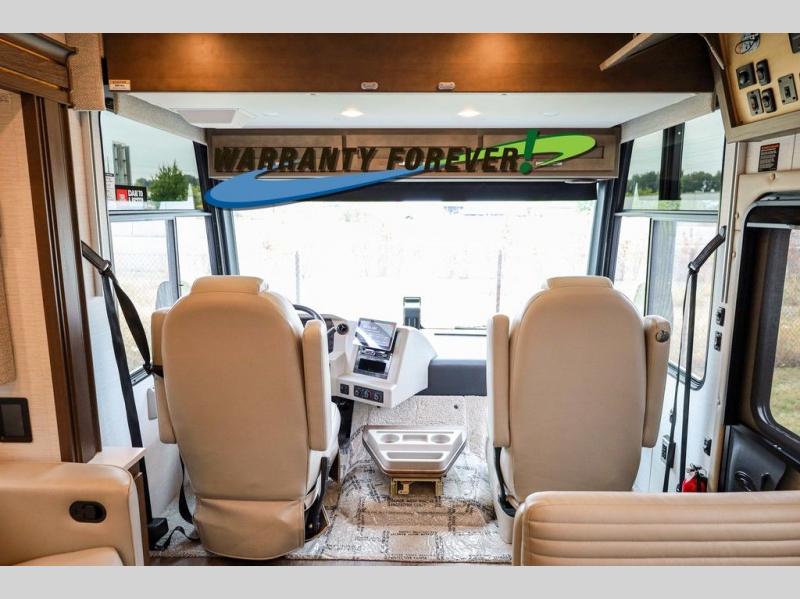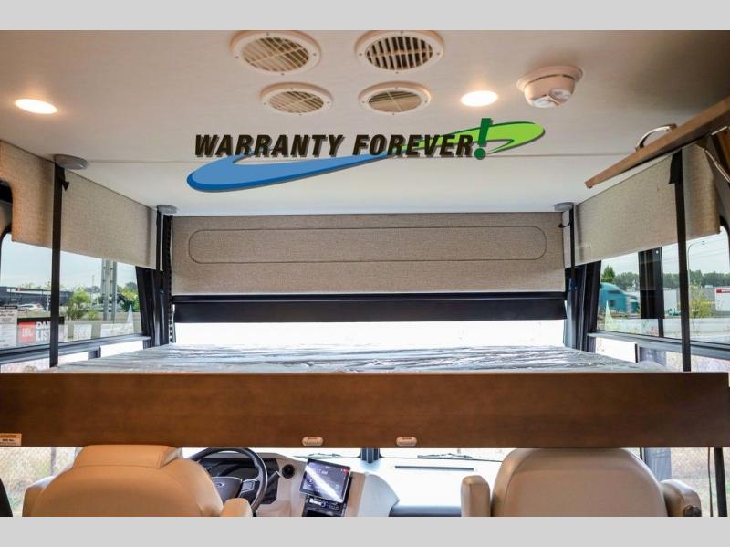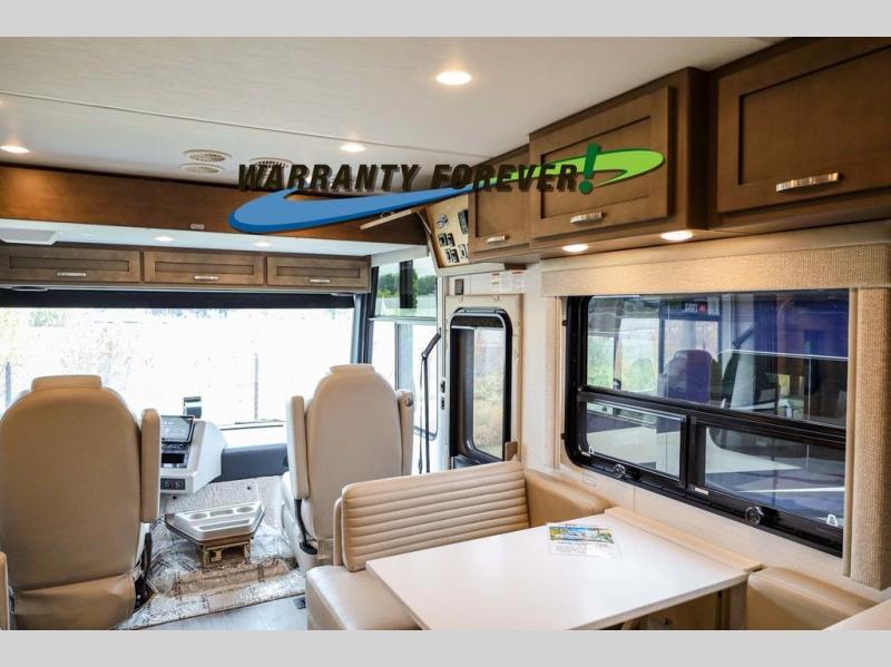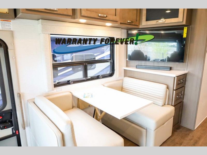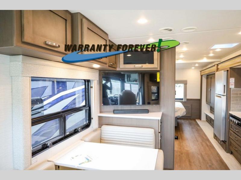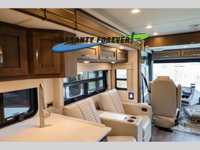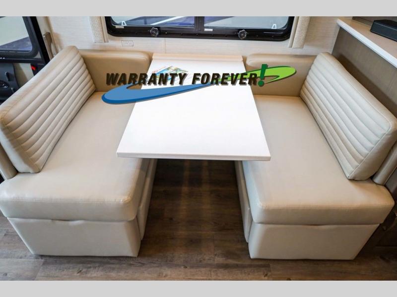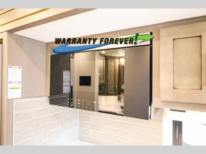 Make each trip luxurious in this spacious coach that can sleep five to six people each night. If you're needing additional sleeping space, just choose the optional drop-down bunk above the cockpit. You will wake up feeling refreshed after sleeping on the king bed slide out, and your guests can put away their bedding after sleeping on the sofa comfort lounge and booth dinette. Breakfast can be made on the three burner cooktop or in the 30" convection microwave. You will appreciate the pantry and a Norcold 10 cu. ft. refrigerator for your food. This model also includes a shirt wardrobe in the bedroom, along with a dresser so you can bring along your favorite outfits. And you'll never go bored with Samsung LED TV's in the bedroom and living area!