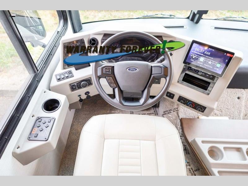 Each Bay Star Class A gas motorhome by Newmar delivers a smooth ride thanks to the standard electronic stability control, along with the 7.3-liter V8 engine with 335 HP and 468 lb./ft. of torque. The exterior is sure to turn heads with its full-paint Masterpiece Finish and new graphics packages, plus you'll have three interior decor choices and three wood choices to truly make the coach your own. Each model includes Williamsburg furniture, woven material in the slide outs, luxurious vinyl plank flooring, polished solid surface countertops in the kitchen, plus many more comforts. Head outside to find lights in the storage compartments, a 5.5kW Cummins Onan generator with remote switch, and hydraulic leveling jacks with a Bluetooth compatible touch pad for set up easy as 1-2-3! You can further customize your coach with the many options that are offered!