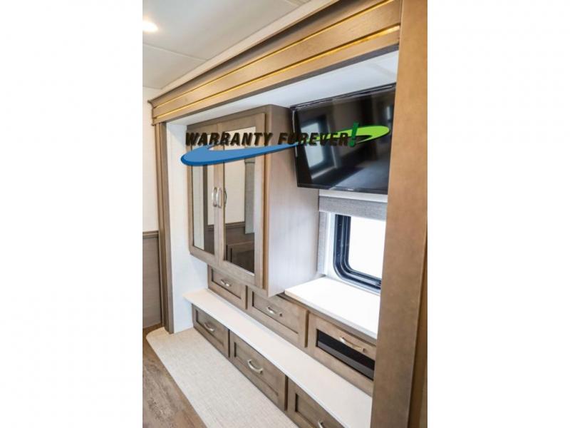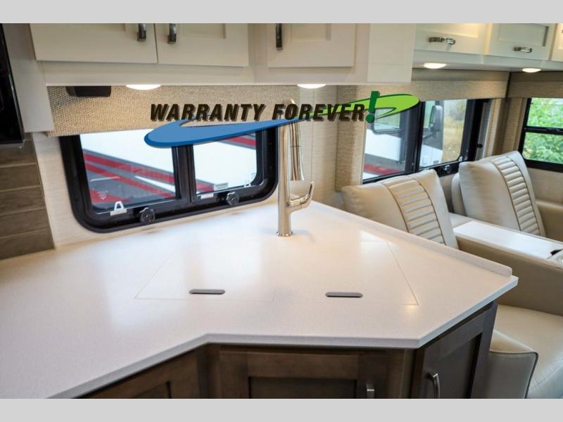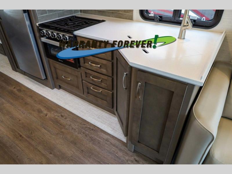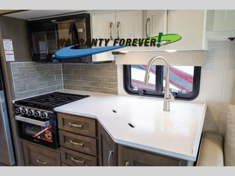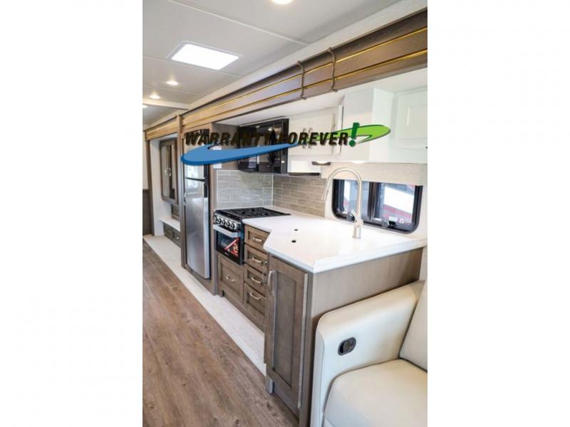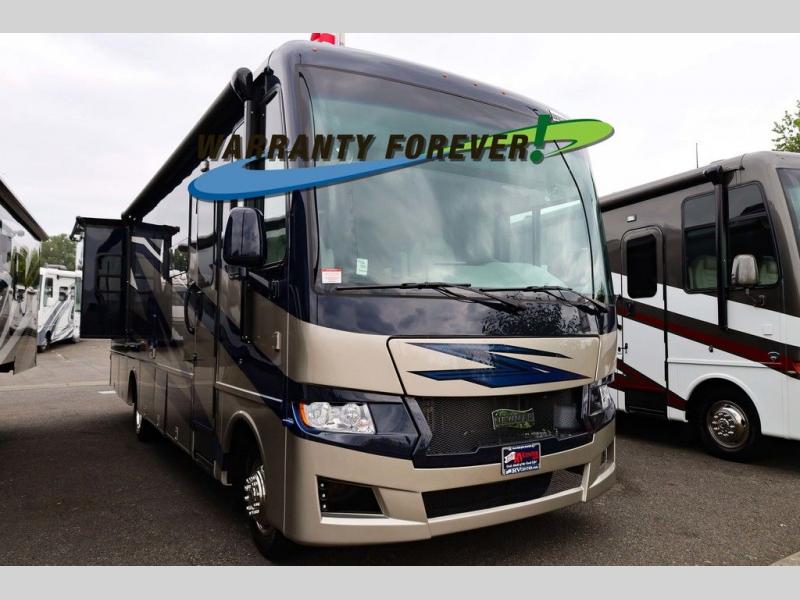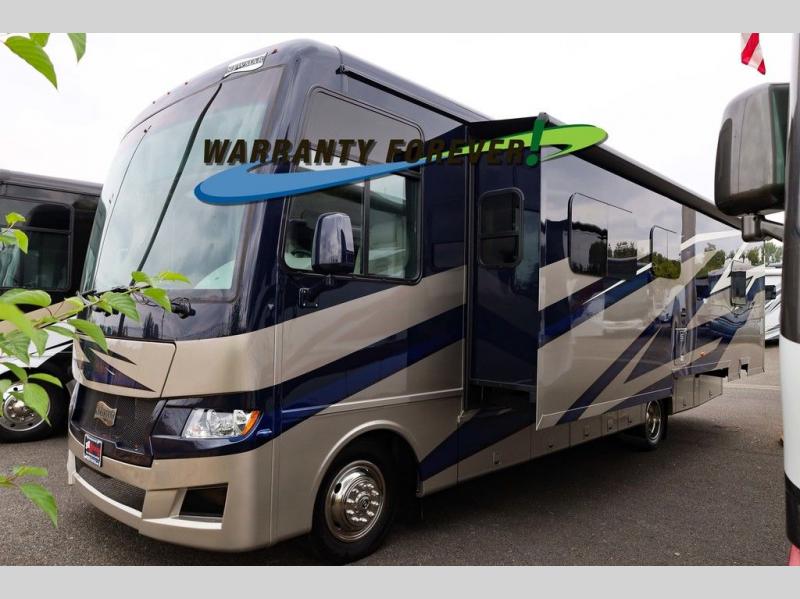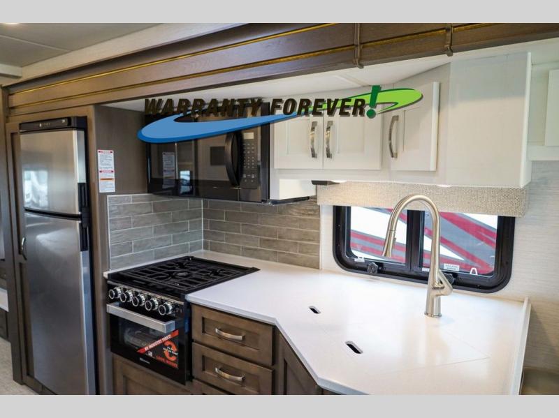 Each Bay Star Sport Class A gas motorhome by Newmar sits on a Ford F-53 chassis with a 7.3-liter V8 engine to power trips both near and far! The gelcoated fiberglass exterior sidewalls are ultra durable, along with the DiFlex II roof with a walkable deck. As soon as you enter the coach you'll be met with luxury features such as polished solid surface countertops in the kitchen and Dusk Maple cabinetry. There are also vinyl ceiling panels, woven material on all slide out floors, plus decorative wall art for a more at-home feel. Each model includes a rearview colored monitor system with audio, cruise control, and an anti-lock braking system the driver is sure to appreciate. Optional features include special order exterior colors, six 6V house batteries, an exterior entertainment center, and more options to further customize your coach!
