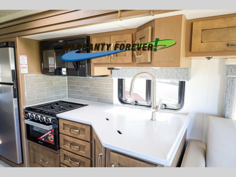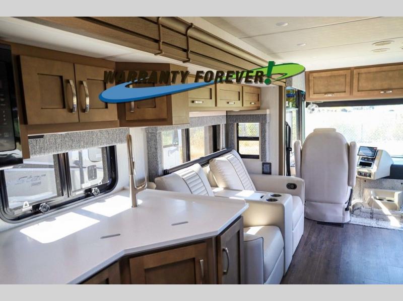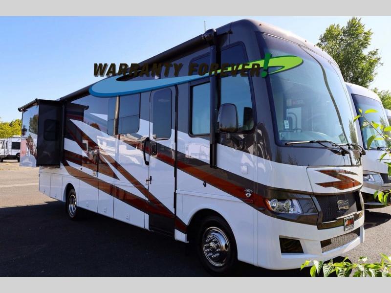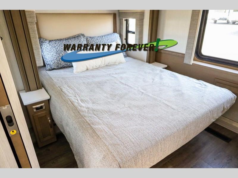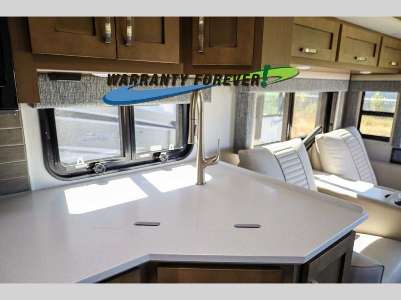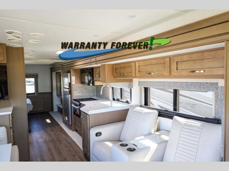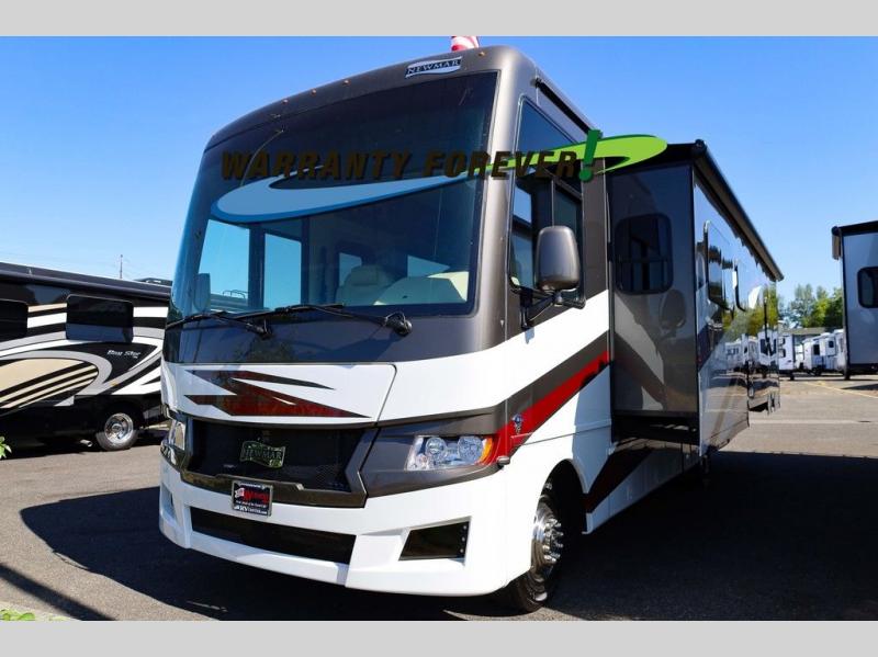 Each Bay Star Sport Class A gas motorhome by Newmar sits on a Ford F-53 chassis with a 7.3-liter V8 engine to power trips both near and far! The gelcoated fiberglass exterior sidewalls are ultra durable, along with the DiFlex II roof with a walkable deck. As soon as you enter the coach you'll be met with luxury features such as polished solid surface countertops in the kitchen and Dusk Maple cabinetry. There are also vinyl ceiling panels, woven material on all slide out floors, plus decorative wall art for a more at-home feel. Each model includes a rearview colored monitor system with audio, cruise control, and an anti-lock braking system the driver is sure to appreciate. Optional features include special order exterior colors, six 6V house batteries, an exterior entertainment center, and more options to further customize your coach!