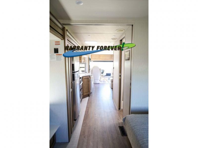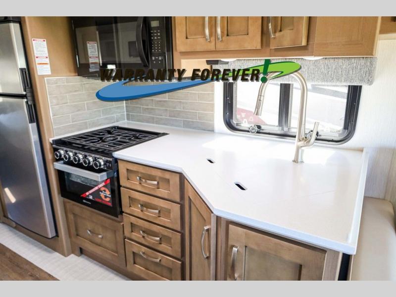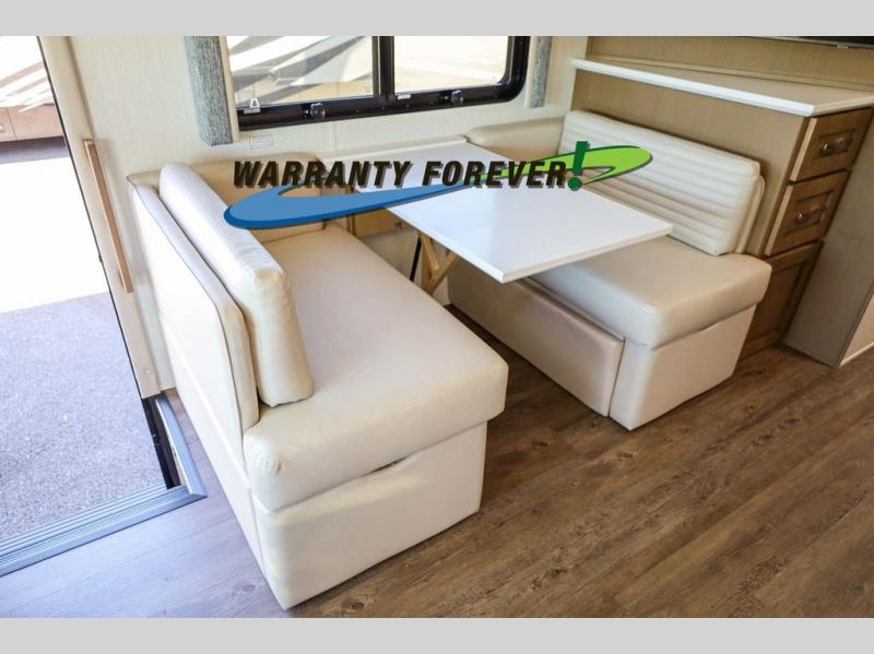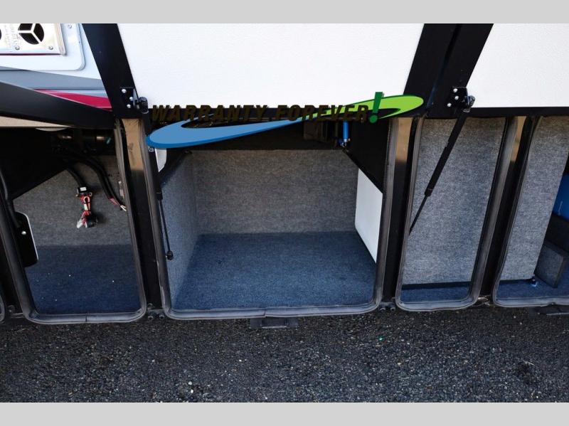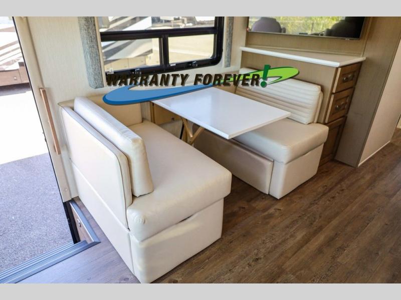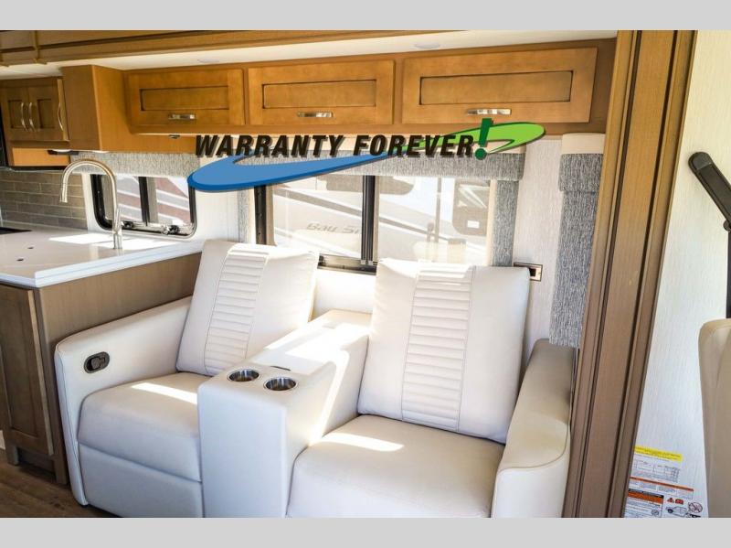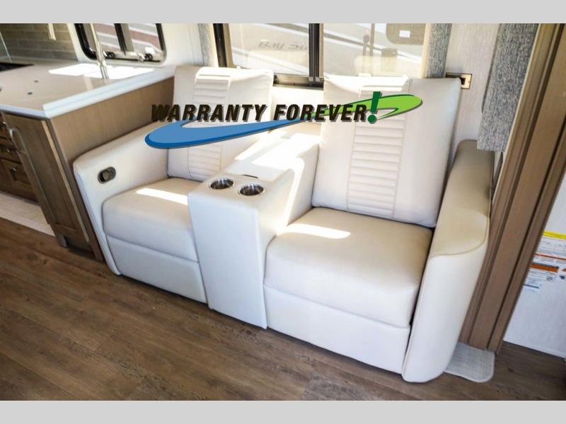 This Bay Star Sport is beaming with features from top to bottom. You will find plenty of storage space for all your items, including front overhead storage, a kitchen pantry, plus a dresser and a shirt wardrobe in the rear private bedroom. The queen bed slide out is sure to provide a great night's rest, and the full-wall slide will open up the whole coach to make it feel more like home. After a day outdoors, your group can watch a movie on the Samsung LED TV in the living area while relaxing on the sofa comfort lounge, or you might just want to play a game at the booth dinette that doubles as sleeping space!