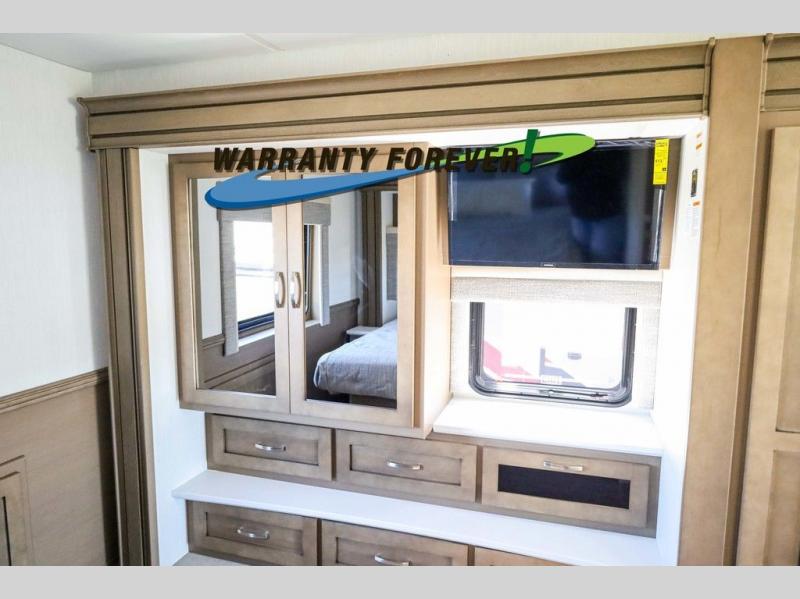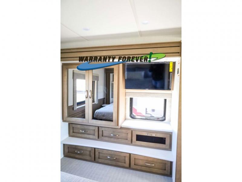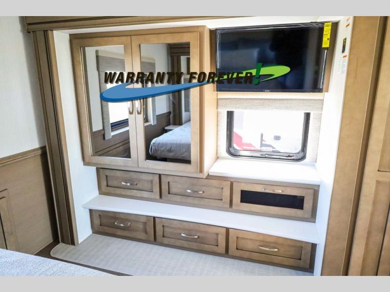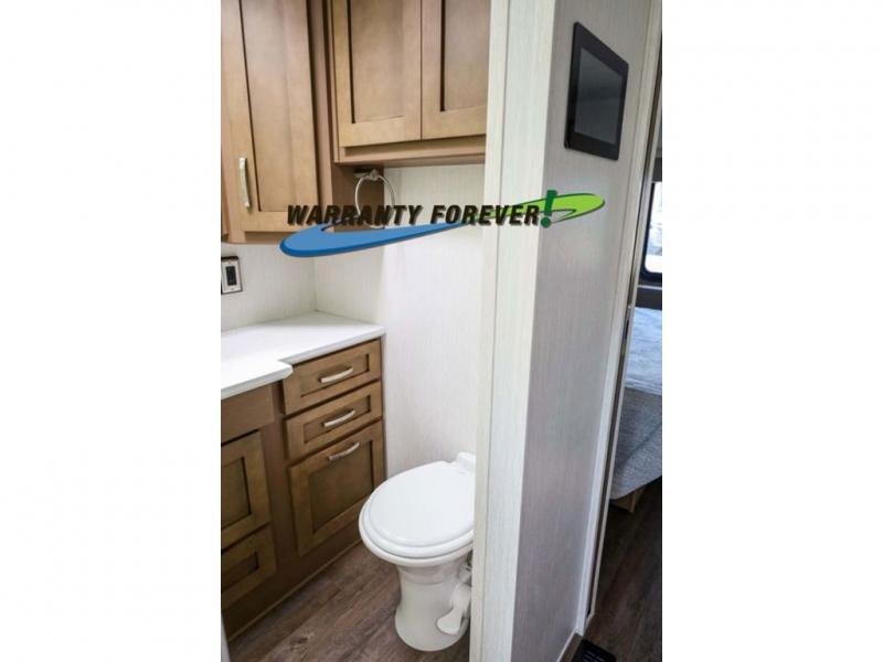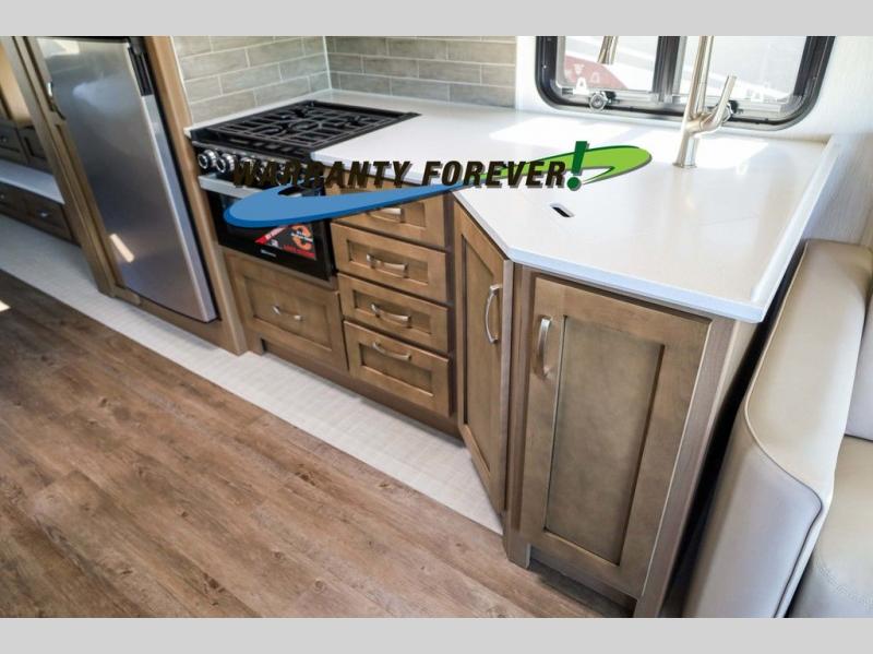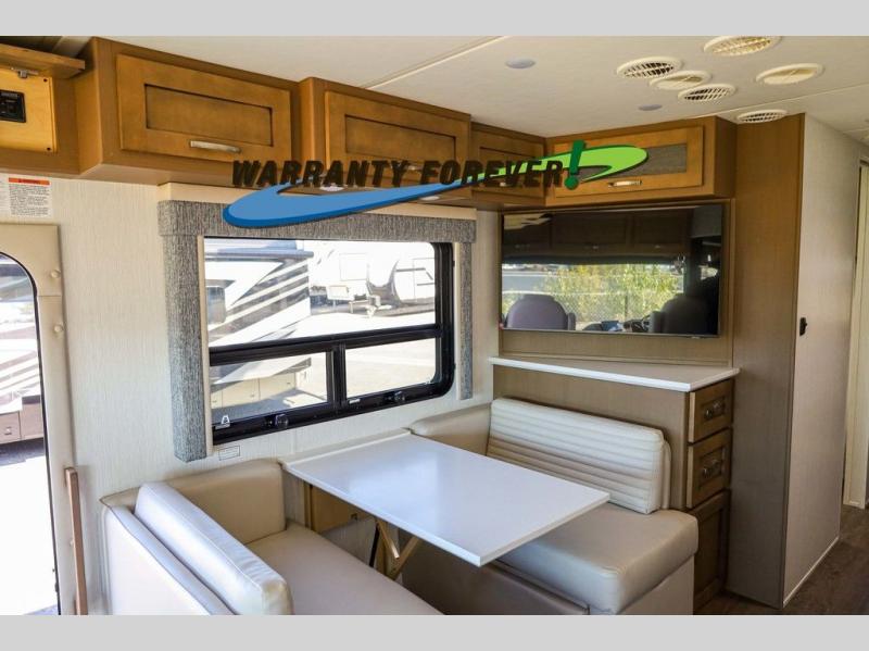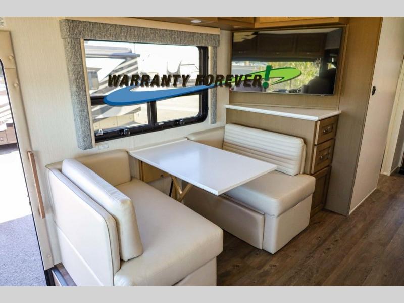 This Bay Star Sport is beaming with features from top to bottom. You will find plenty of storage space for all your items, including front overhead storage, a kitchen pantry, plus a dresser and a shirt wardrobe in the rear private bedroom. The queen bed slide out is sure to provide a great night's rest, and the full-wall slide will open up the whole coach to make it feel more like home. After a day outdoors, your group can watch a movie on the Samsung LED TV in the living area while relaxing on the sofa comfort lounge, or you might just want to play a game at the booth dinette that doubles as sleeping space!