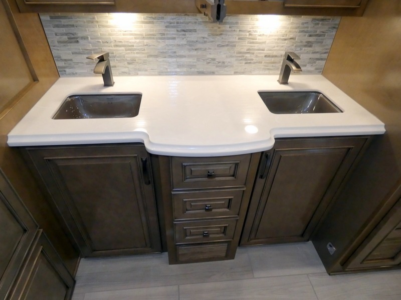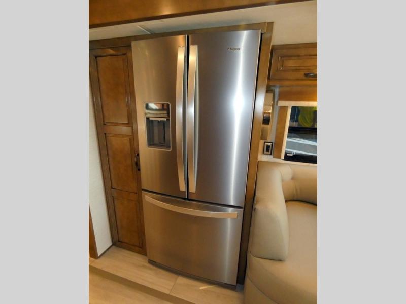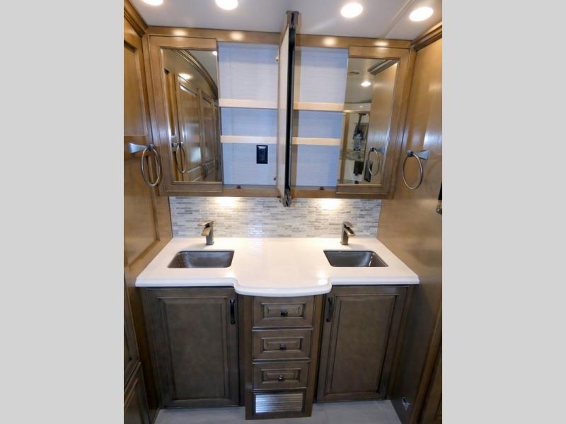 Luxury is waiting for you in this spacious Dutch Star Class A diesel motorhome that can comfortably sleep six each night. The full-wall slide plus two additional slides will open up the whole unit for a more at-home feel. Relax on the hide-a-bed sofa or read a book on the jackknife sofa. The hide-a-leaf dinette will be the perfect place to catch up on some work while you're away from home. Easily prepare breakfast, lunch, and dinner on the all-electric induction cooktop, or use the convenient stainless steel convection microwave with an air fryer feature. This model features a master suite with a pillowtop king bed, dual wardrobes and a dresser, plus an LED TV. You will love the rear bath cathedral ceiling that will add additional height, plus there is plenty of storage space and two bath sinks so that you and your spouse can freshen up at once! Specifications shown are with the standard Freightliner tag axle chassis. See dealer for details if optional Spartan K2 tag axle chassis is selected.