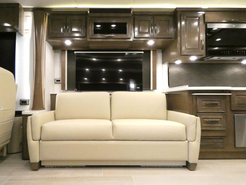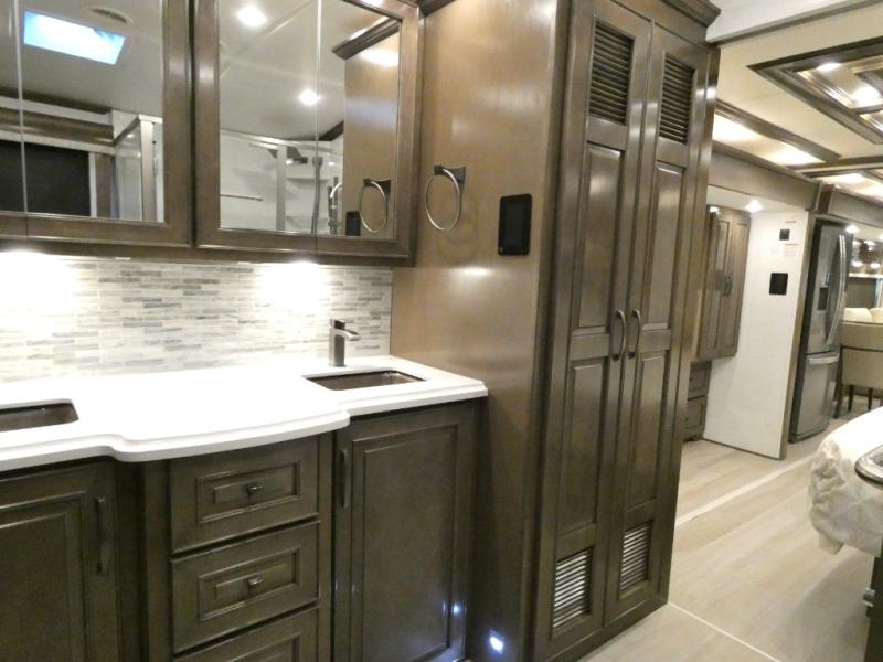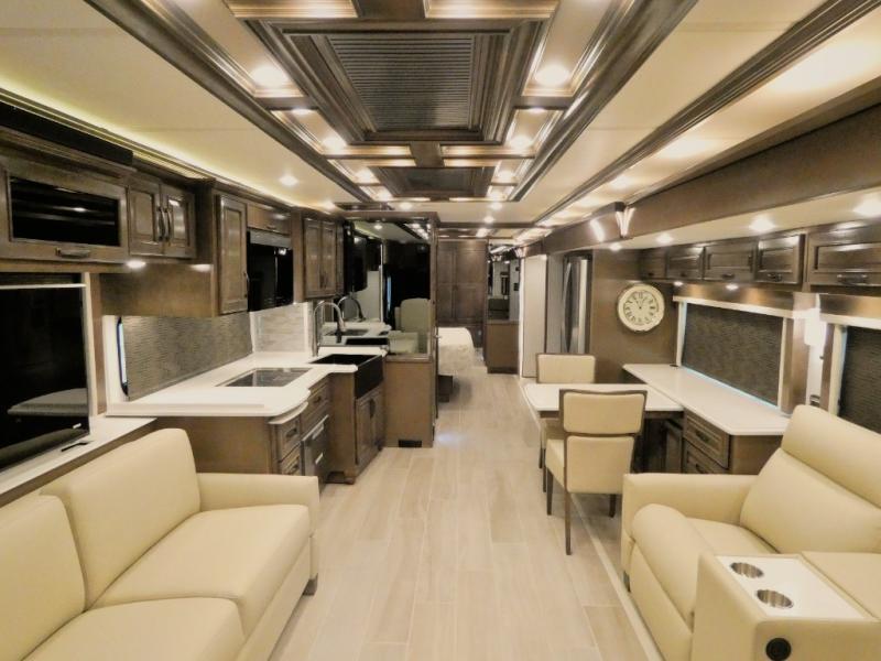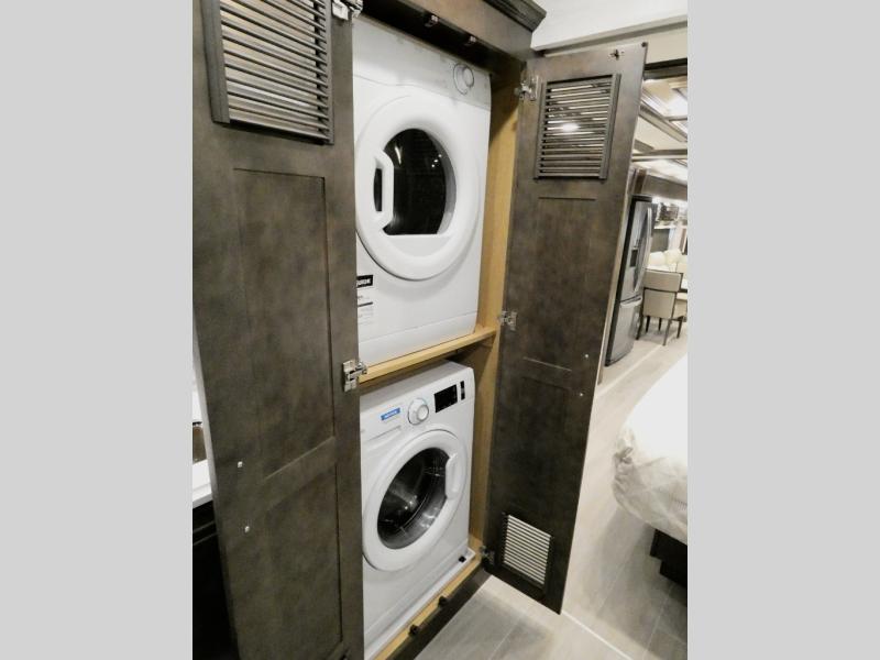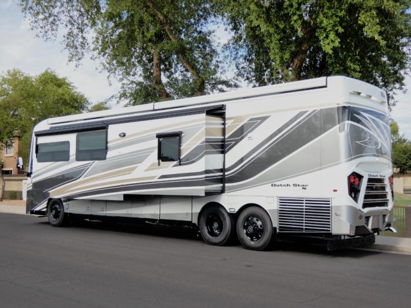 Luxury is waiting for you in this spacious Dutch Star Class A diesel motorhome that can comfortably sleep six each night. The full-wall slide plus two additional slides will open up the whole unit for a more at-home feel. Relax on the hide-a-bed sofa or read a book on the jackknife sofa. The hide-a-leaf dinette will be the perfect place to catch up on some work while you're away from home. Easily prepare breakfast, lunch, and dinner on the all-electric induction cooktop, or use the convenient stainless steel convection microwave with an air fryer feature. This model features a master suite with a pillowtop king bed, dual wardrobes and a dresser, plus an LED TV. You will love the rear bath cathedral ceiling that will add additional height, plus there is plenty of storage space and two bath sinks so that you and your spouse can freshen up at once!
