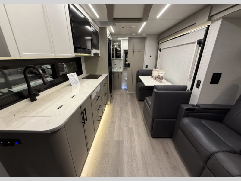Step inside to find hardwood cabinetry, Italian leather furniture, durable vinyl flooring, and elegant solid surface countertops. Personalize your space with six décor choices including Soho, Meta, Aria, Elgin, Rizo, and Avery.