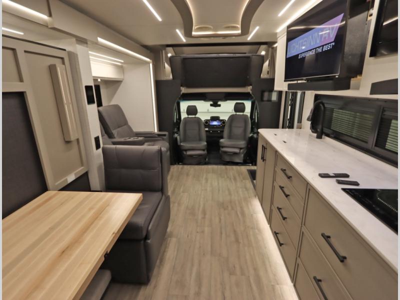 1. Upgraded Mercedes Benz VS30 4500 chassis with a Gross Vehicle Weight Rating of 12,125 lb, resulting in higher quality, luxurious amenities, including Amish hardwood cabinetry and true dual pane thermo insulated glass windows, with ample cargo carrying capacity