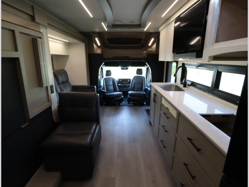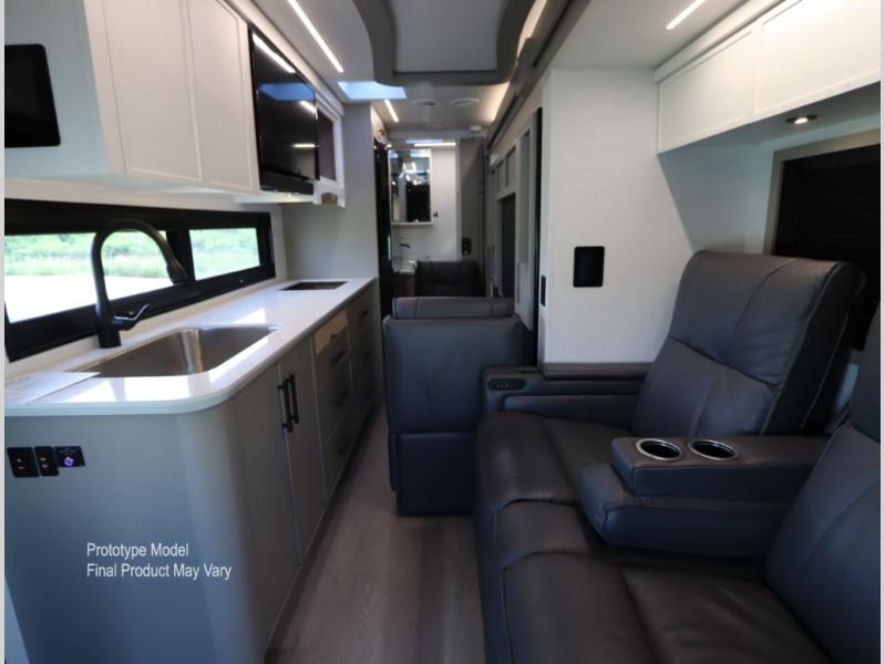1. Upgraded Mercedes Benz VS30 4500 chassis with a Gross Vehicle Weight Rating of 12,125 lb, resulting in higher quality, luxurious amenities, including Amish hardwood cabinetry and true dual pane thermo insulated glass windows, with ample cargo carrying capacity