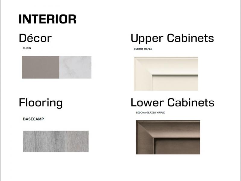 | Interior Color | Elgin Softgoods with Hardwood Summit Matte Uppers and Sedona Matte Lower Cabinetry |