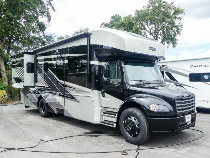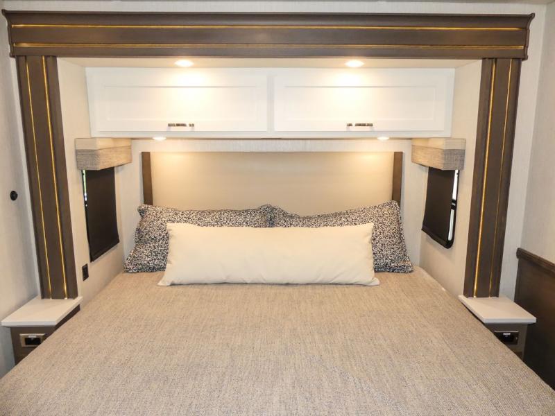 You can see the difference on these Newmar Grand Star Super C diesel motorhomes! Starting with the striking full-paint Masterpiece Finish and interior decor with elegant cabinet finishes. The easy to maneuver Freightliner S2RV chassis provides12,000 lb. towing capacity powered by a 360 HP diesel engine. An 8.0Kw generator and lithium batteries keep you up and running no matter where you roam.