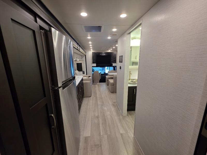 You can see the difference on these Newmar Grand Star Super C diesel motorhomes! Starting with the three striking color options in a full-paint Masterpiece Finish and three stylish interior decor options with elegant cabinet finishes. They are easy to maneuver with a Freightliner S2RV chassis, have a large 12,000 lb. towing capacity, and 360 HP to power you to your favorite destinations. An 8kw generator and lithium batteries power these units. Enjoy at-home comforts like a king bed, an exterior entertainment center with sound bar, and a Truma Comfort Plus continuous-flow water heater. There is also a Carefree Travel-R power side awning with lighting to light up the good times day or night. Come find your favorite model today!