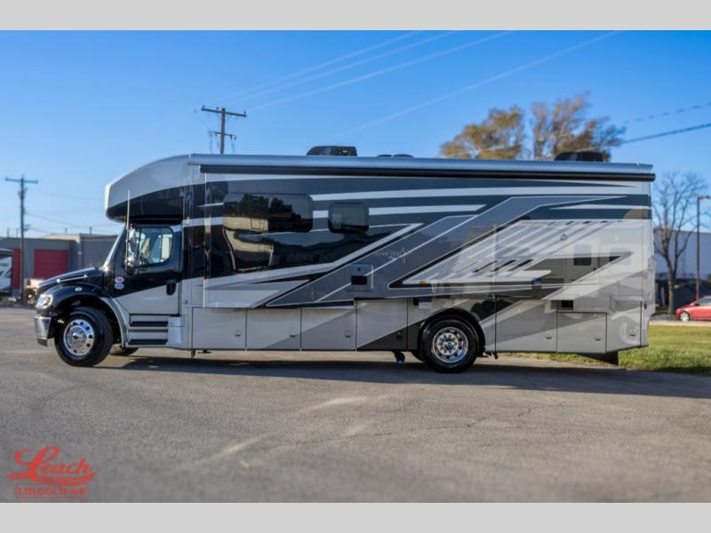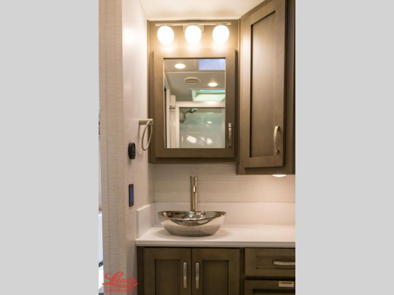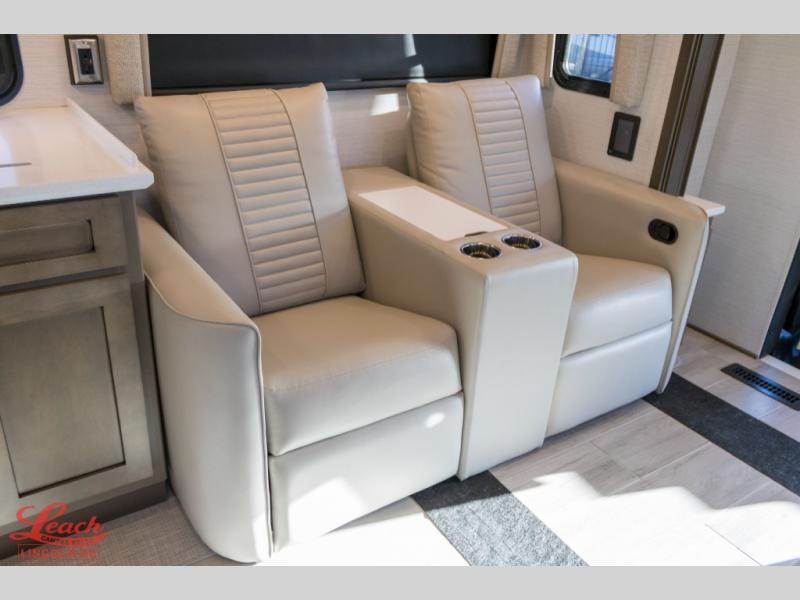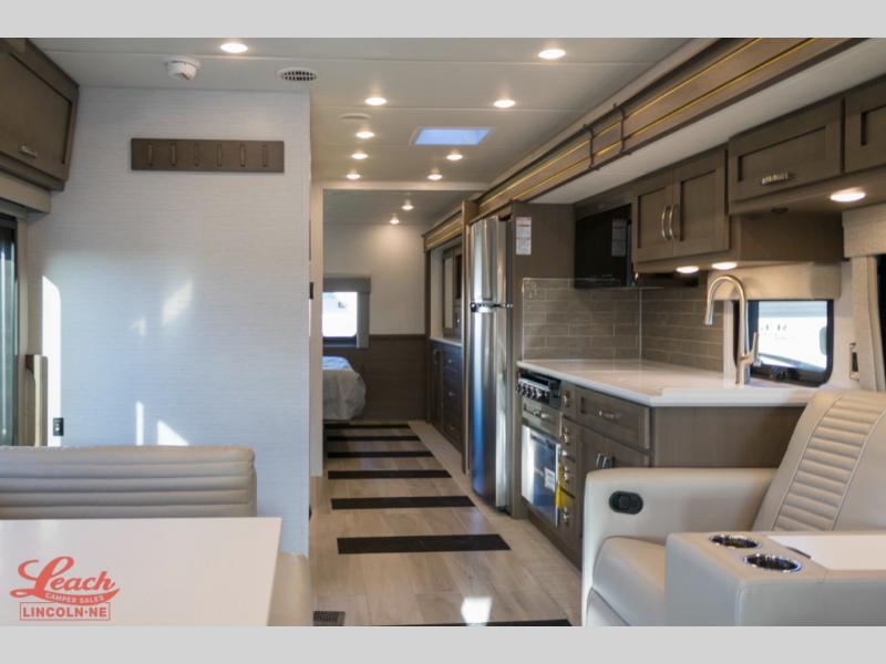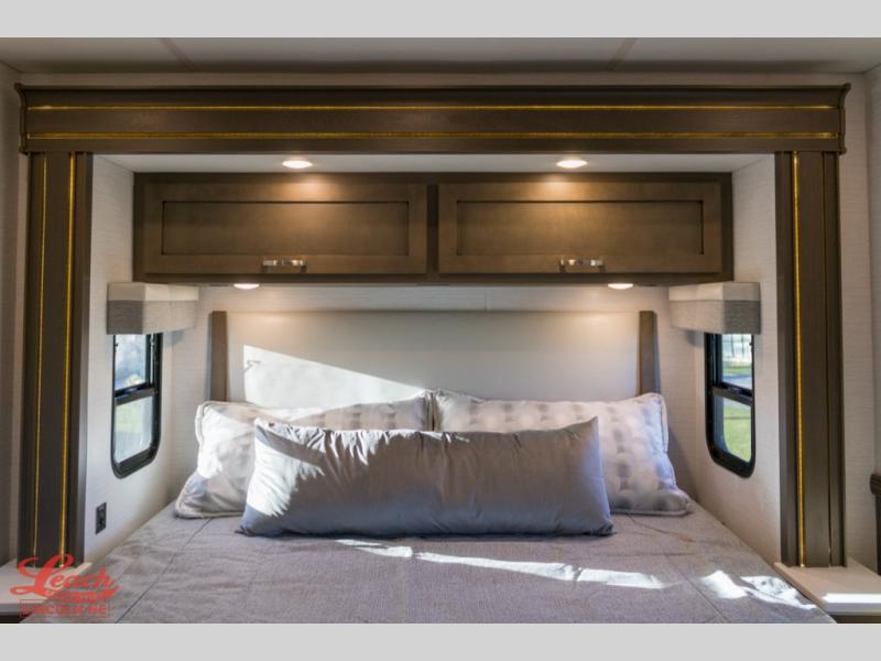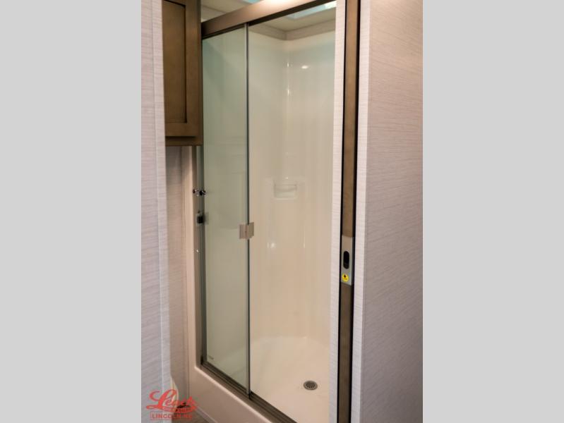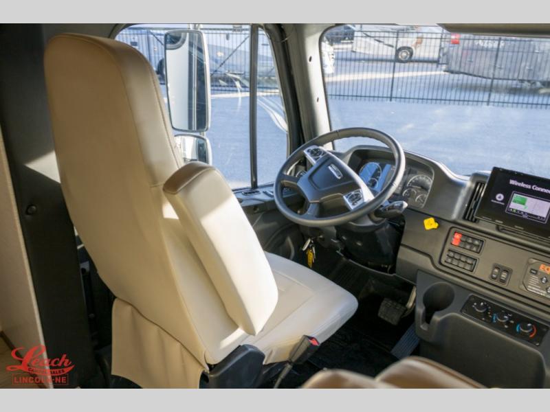 This motorhome is perfect for first time RVers who are looking for a smaller floorplan! The rear private bedroom has a retracting king bed slide across from shirt wardrobes and dresser with an optional washer and dryer below it. If you need more sleeping space then you can utilize the bunk over cab, transform the booth dinette, or lay on the 68" sofa comfort lounge. The chef can prepare their best home cooked meals with the microwave convection oven with air fryer and 18 cu. ft. residential refrigerator, plus you could add the optional induction cooktop or optional dishwasher for easy cleanup. After a long day of traveling, you can easily freshen up in the full bathroom with the 40" x 30" shower and store any necessary toiletries in the overhead cabinets!