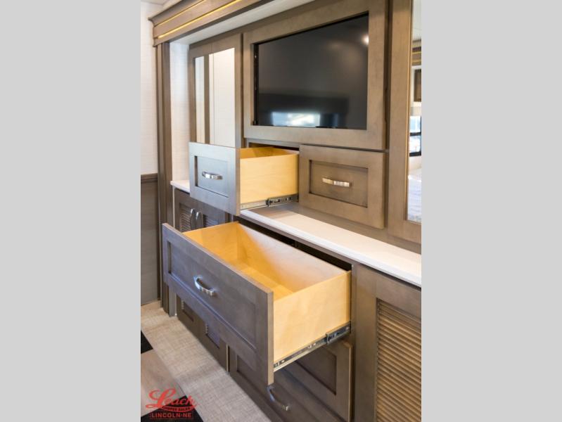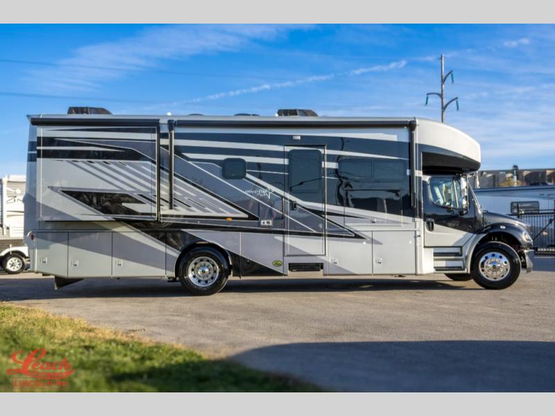 You can see the difference on these Newmar Grand Star Super C diesel motorhomes! Starting with the three striking color options in a full-paint Masterpiece Finish and three stylish interior decor options with elegant cabinet finishes. They are easy to maneuver with a Freightliner S2RV chassis, have a large 12,000 lb. towing capacity, and 360 HP to power you to your favorite destinations. An 8kw generator and lithium batteries power these units. Enjoy at-home comforts like a king bed, an exterior entertainment center with sound bar, and a Truma Comfort Plus continuous-flow water heater. There is also a Carefree Travel-R power side awning with lighting to light up the good times day or night. Come find your favorite model today!