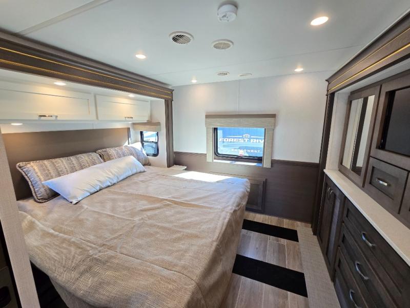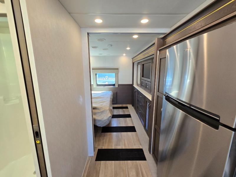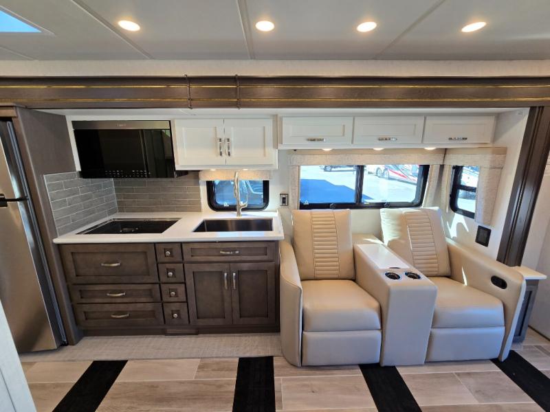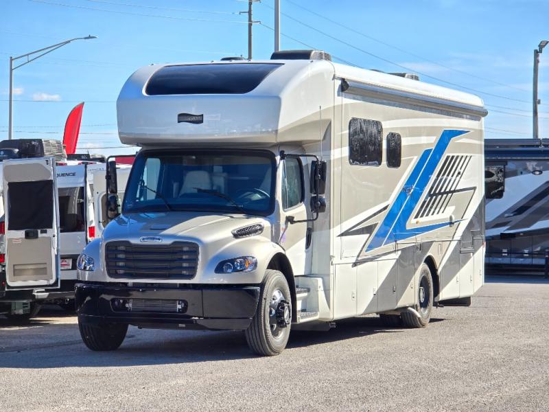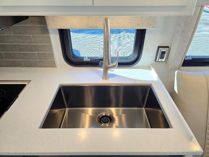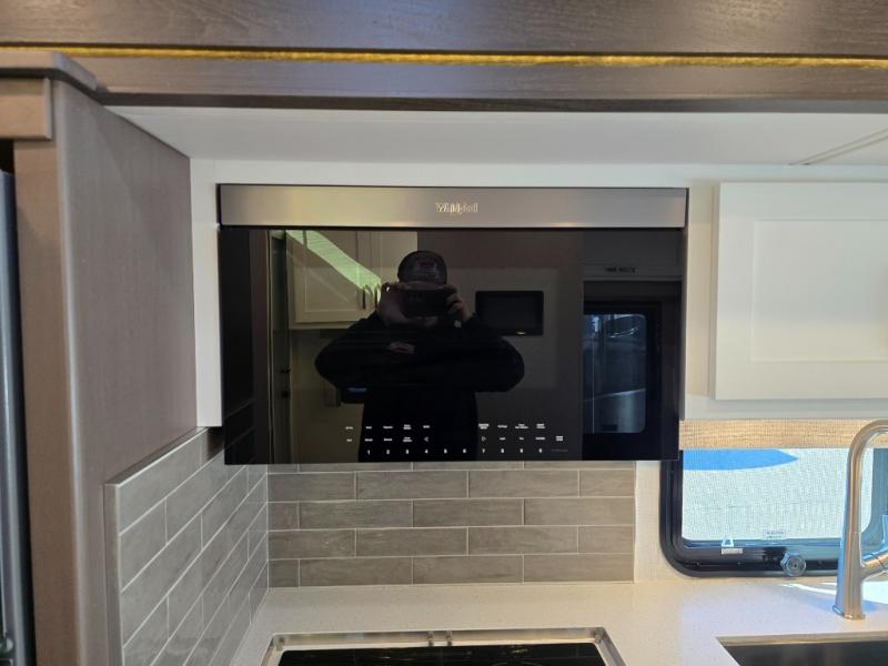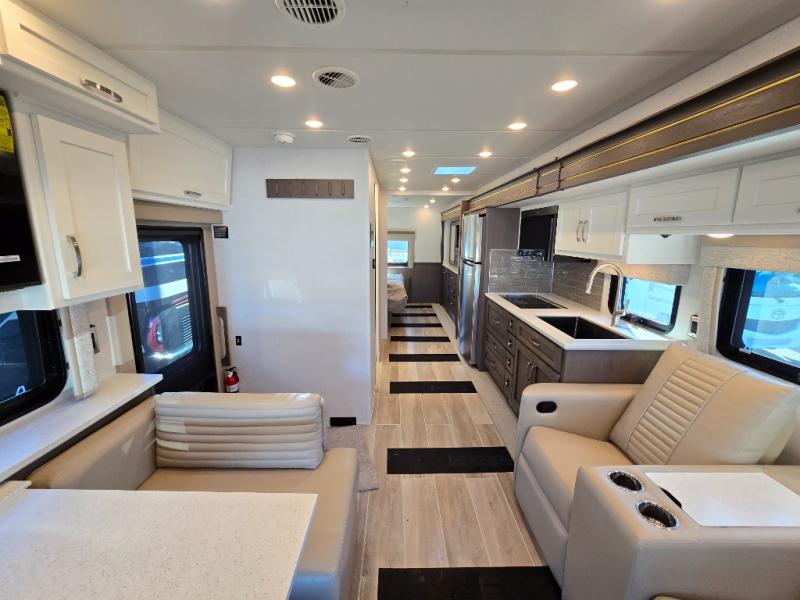 This motorhome is perfect for first time RVers who are looking for a smaller floorplan! The rear private bedroom has a retracting king bed slide across from shirt wardrobes and dresser with an optional washer and dryer below it. If you need more sleeping space then you can utilize the bunk over cab, transform the booth dinette, or lay on the 68" sofa comfort lounge. The chef can prepare their best home cooked meals with the microwave convection oven with air fryer and 18 cu. ft. residential refrigerator, plus you could add the optional induction cooktop or optional dishwasher for easy cleanup. After a long day of traveling, you can easily freshen up in the full bathroom with the 40" x 30" shower and store any necessary toiletries in the overhead cabinets!