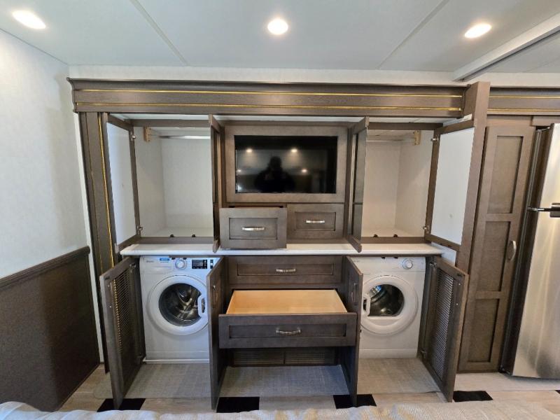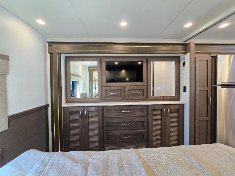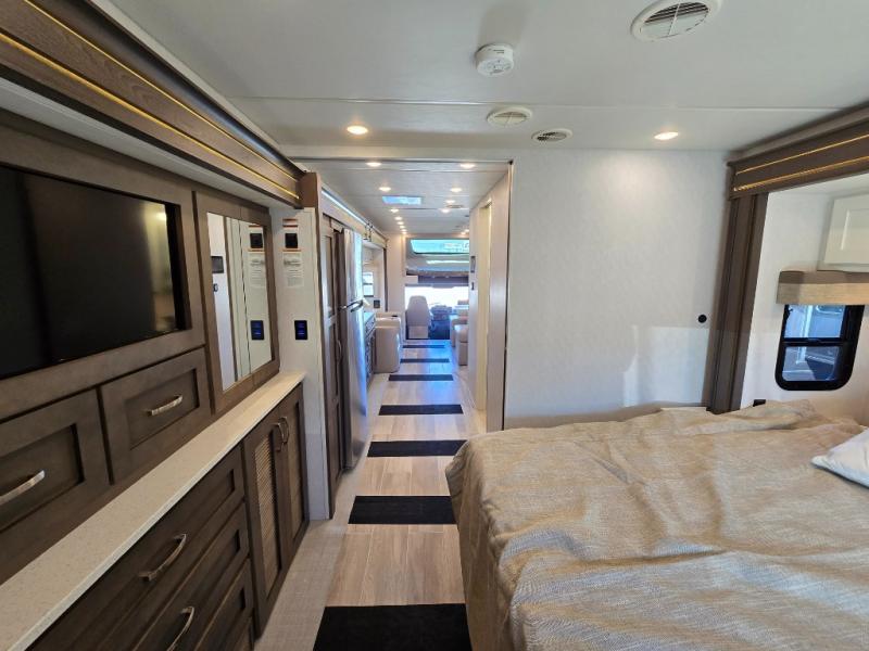 You can see the difference on these Newmar Grand Star Super C diesel motorhomes! Starting with the three striking color options in a full-paint Masterpiece Finish and three stylish interior decor options with elegant cabinet finishes. They are easy to maneuver with a Freightliner S2RV chassis, have a large 12,000 lb. towing capacity, and 360 HP to power you to your favorite destinations. An 8kw generator and lithium batteries power these units. Enjoy at-home comforts like a king bed, an exterior entertainment center with sound bar, and a Truma Comfort Plus continuous-flow water heater. There is also a Carefree Travel-R power side awning with lighting to light up the good times day or night. Come find your favorite model today!
