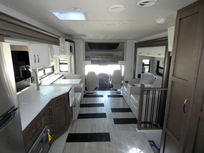 You can see the difference on these Newmar Grand Star Super C diesel motorhomes! Starting with the striking full-paint Masterpiece Finish and stylish interior decor with elegant cabinet finishes. They are easy to maneuver with a Freightliner S2RV chassis, have a large 12,000 lb. towing capacity, and 360 HP to power you to your favorite destinations. An 8kw generator and lithium batteries power these units. Enjoy at-home comforts like a king bed, an exterior entertainment center with sound bar, and a Truma Comfort Plus continuous-flow water heater. There is also a Carefree Travel-R power side awning with lighting to light up the good times day or night. Come find your favorite model today!