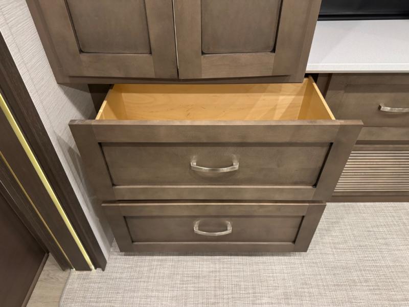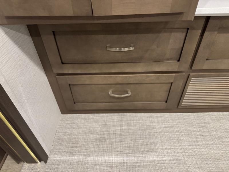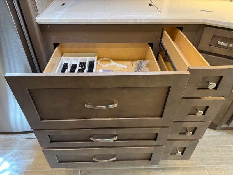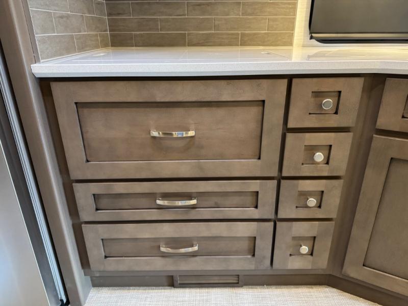 - Gourmet Kitchen – Equipped with top-of-the-line appliances, including a full-size refrigerator, microwave, three-burner stove, and convection oven, the Grand Star’s kitchen is ready for any culinary adventure. The solid-surface countertops and ample storage complete the space, offering all the conveniences of home.